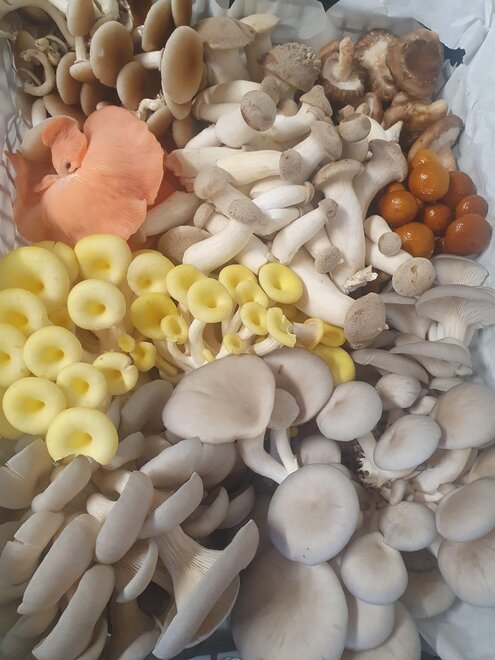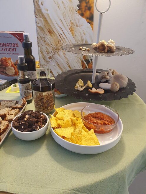 The various mushroom varieties thrive in St. Stefan im Rosental and are continuously harvested fresh. In addition to up to 9 different types of fresh mushrooms, they are also processed into numerous products directly at the farm. In cooperation with local farmers, mushroom risotto or polenta mixtures, mushroom sauces, or spreads are created, just to name a few.