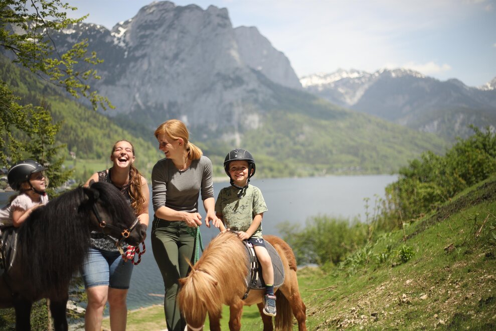 We stroke, groom and saddle the ponies together and ride from the Pferdefreunde Zloam Stables next Narzissendorf Zloam to the beautiful Grundlsee and back again. Our ponies are looking forward to happy children's eyes. Suitable for children aged 3 to 8 years accompanied by a parent or guardian.