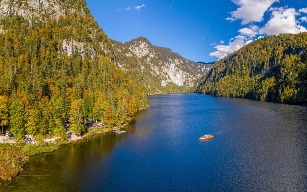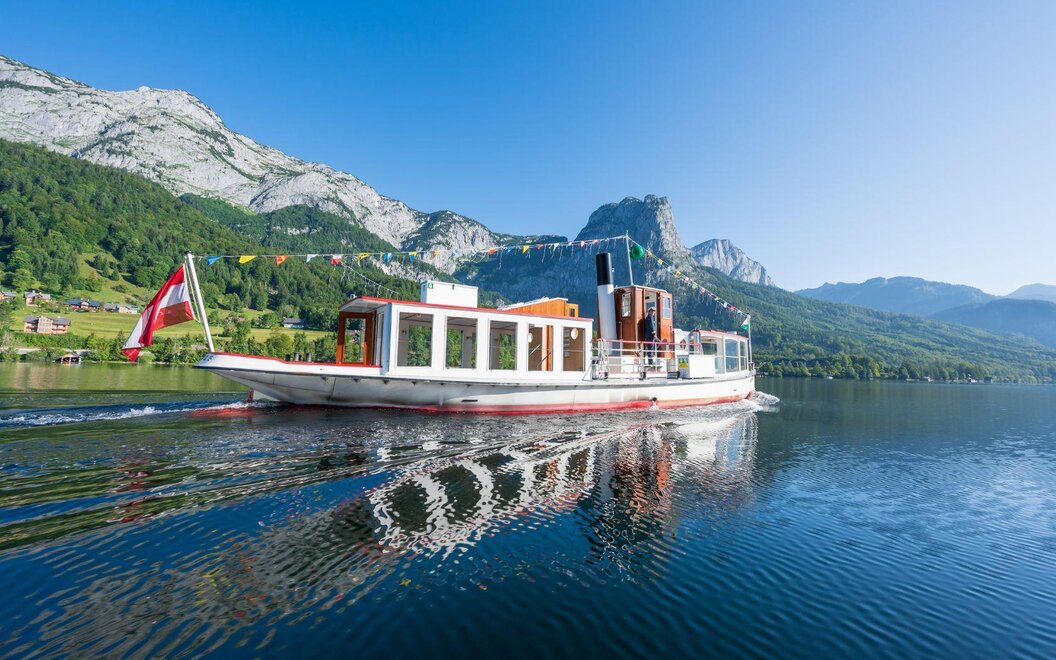 The Shipping Grundlsee offers impressive trips on the clear waters of the Ausseerland. With the largest electrically powered passenger ship in Styria, the Grundlsee, also known as the Styrian Sea, is navigated in an environmentally friendly manner.