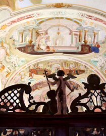 Rein Abbey was given its present baroque appearance around the middle of the 18th century by the Graz master builder Johann Georg Stengg. The 76-metre-long, 18-metre-wide and 17-metre-high wall pillar church is one of the largest and most beautiful churches in Styria. The painter Josef Adam Mölck left no spot unpainted, and renowned artists of the Baroque period furnished the church with impressive altars and sculptures. The dignified high altarpiece "Adoration of the Shepherds" was created by the important Austrian Baroque painter Johann Martin Schmidt (Kremser Schmidt).