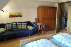 quiet room/apartment, dishes available, meadow, heater, cooking possibilities, bedding, hairdryer, rustic furniture, separate bedroom/s: 2, dryer, low-noise room/apart., combined bedroom/living room, Größe m²: 60, electric stove, central heating, radio, living room, coffeemaker, TV, separate bedroom/living room, garden, microwave, garden furniture, dish sink, refrigerator, satellite TV, kettle, kitchen utensils, use of washmachine, no pets allowed, oven, bed linen available, separate kitchen, non-smoking room/apt., cable TV, family room/apt., playpen, toiletries, closet, freezer compartment, kitchen, toaster, towels available, baby change pad, refrigerators available, furniture suite, kitchen and table linen