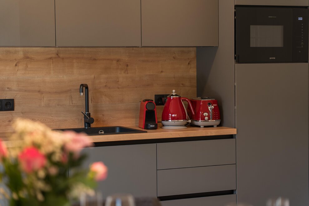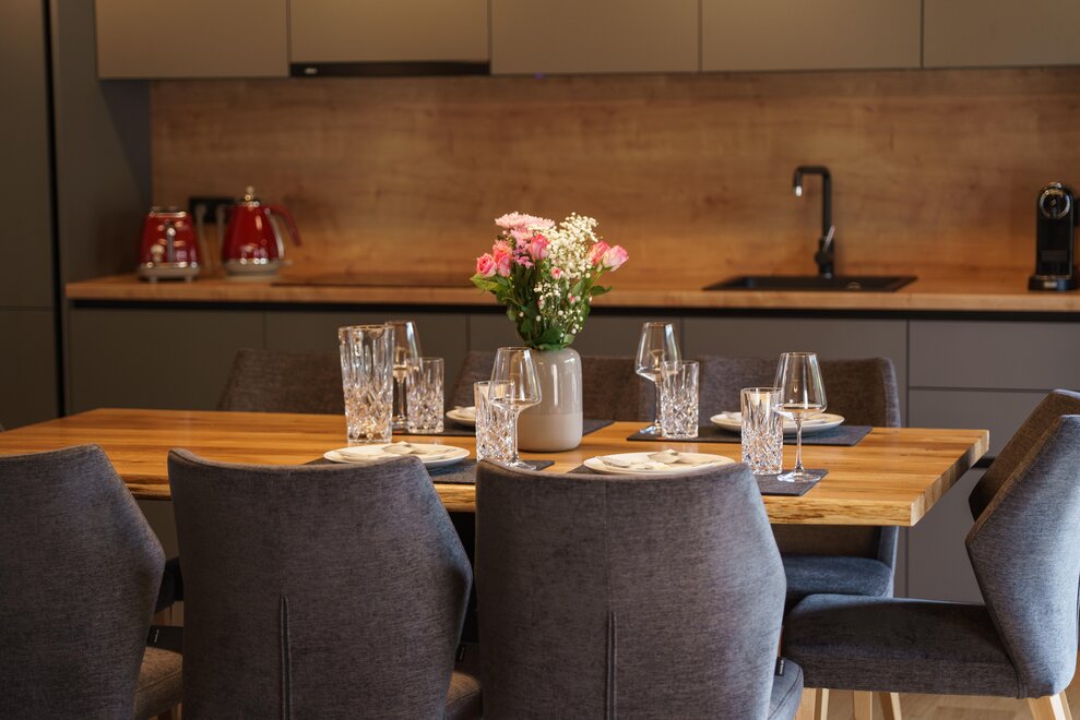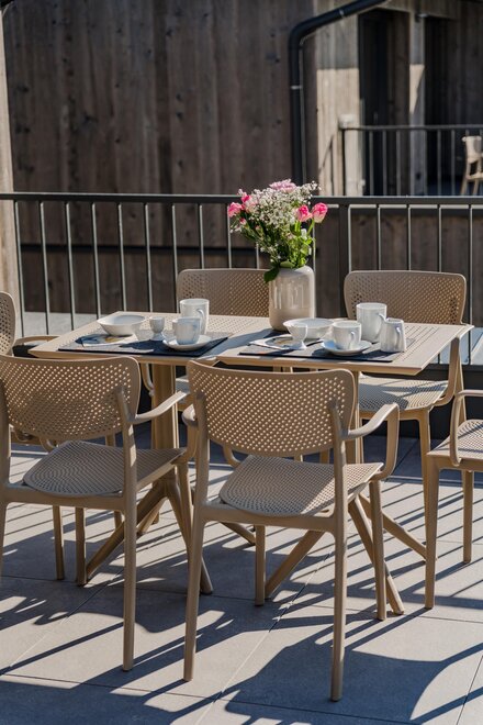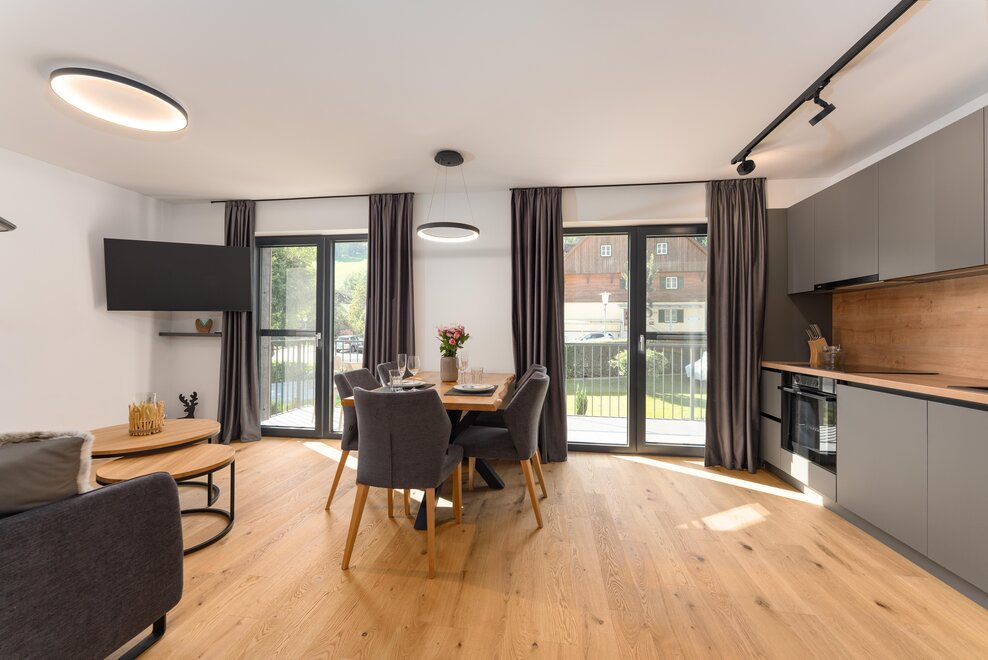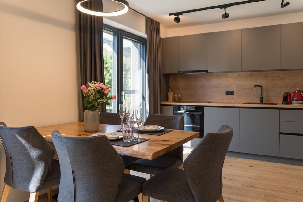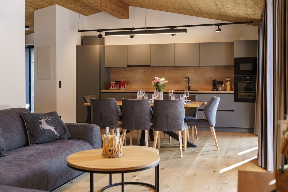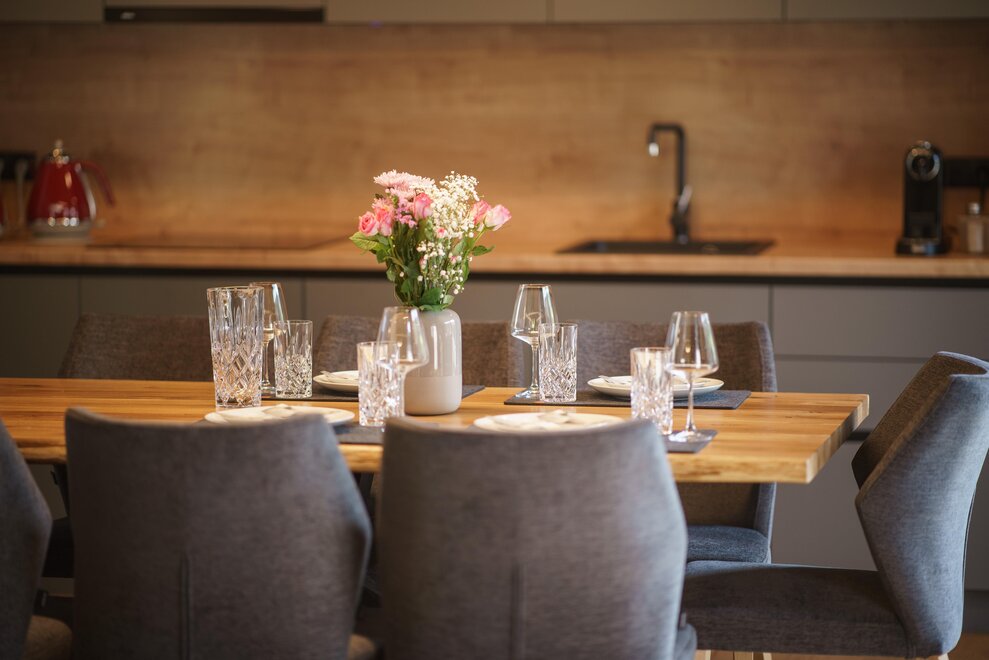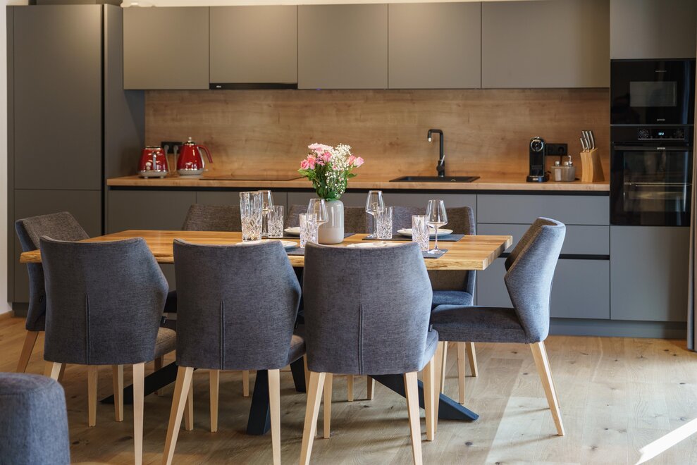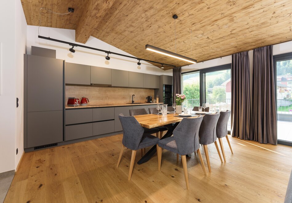separate bedroom/s: 3, oven, TV, balcony furniture, no pets allowed, towels available, coffeemaker, socket close to bed, kitchen and table linen, cooking possibilities, terrace, freezer compartment, washing machine, kitchen, dishwasher, use of washmachine, weekly cleaning, internet connection available, walk-in closet, fire extinguisher, toilet laundry, family room/apt., toaster, vent hood, closet, room/apt. (non-allergic), modern furnishing, toiletries, no carpet, Größe m²: 110, safe, essentials (towels, bed linen, soap, toilet tissue), central heating, combined bedroom/living room, wooden or parquet floor, air conditioning, garden, store room, WiFi, terrace (some rooms), tiled or marmor floor, Verleih E-Bike, sauna, high chair, dish sink, kitchen utensils, electric stove, anteroom, garden furniture, cable TV, kettle, refrigerators available, hairdryer, microwave, bed linen (non-allergenic), refrigerator, private entry, fireplace, combination microwave, open plan kitchen/living room, furniture suite, garden barbecue, non-smoking room/apt., heater, dishes available, dining room, quiet room/apartment, CO detector, balcony, dryer, living room, separate bedroom/living room, good as new room/apt.