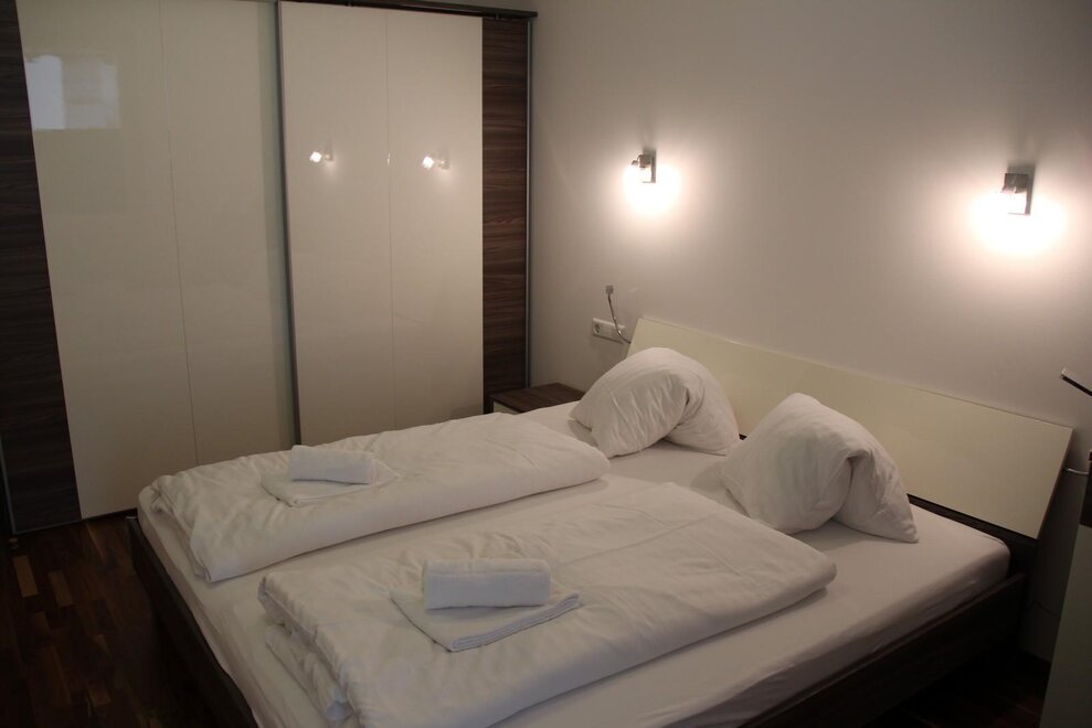 Both bedrooms are furnished with double beds (1 x 180 cm & 1 x 140 cm).