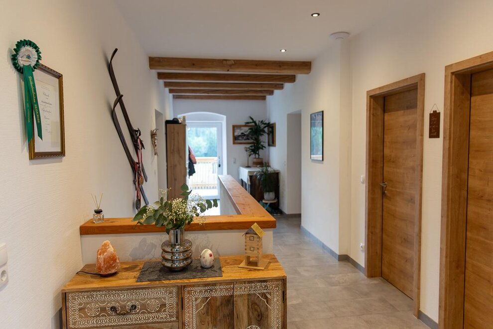 Our apartment is located in a quiet environment, on the first floor of our completely renovated farm house.