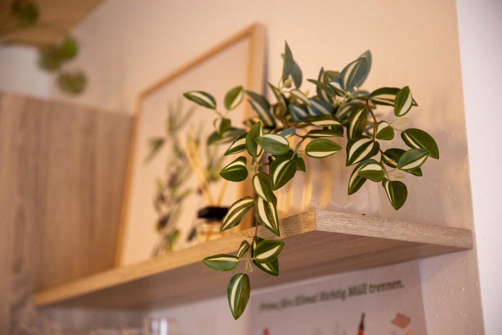 You can reach the modernly furnished residential unit via the shared staircase.