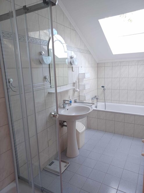 no. of bathrooms: 1, wash stand, bathtub, separate toilet, shower