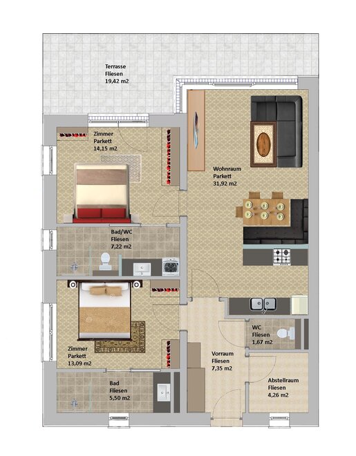 garden furniture, essentials (towels, bed linen, soap, toilet tissue), dishes available, kitchen, heater, desk, good as new room/apt., non-smoking room/apt., anteroom, toiletries, separate bedroom/s: 2, kitchen and table linen, oven, bedding, toaster, use of washmachine, hairdryer, terrace, store room, washing machine, refrigerator, garden, cooking possibilities, electric stove, towels available, meadow, TV, closet, central heating, furniture suite, bed linen available, combined bedroom/living room, private entry, freezer compartment, refrigerators available, quiet room/apartment, kitchen utensils, Größe m²: 85, dryer, dishwasher, internet connection available, vent hood, island kitchen, open plan kitchen/living room, cable TV, modern furnishing, no pets allowed, coffeemaker, kettle, WiFi