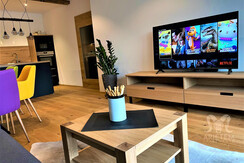 The high-quality furnished "Arietem Apartment" from myNests in the heart of Gröbming offers space for up to 6 people. With its rustic modern charm, the apartment provides a cozy, relaxing atmosphere with 2 bedrooms (double beds) and a sofa bed in the living area. You can enjoy a beautiful view of the mountains on the generous terrace where you can spend warm summer evenings barbecuing. The apartment features two bedrooms and a fully equipped kitchen with a dishwasher, oven, coffee machine, and microwave. A flat-screen TV including Netflix and Canal+ is available.