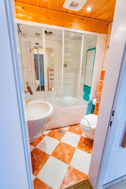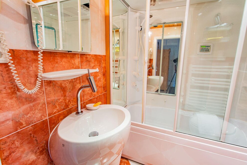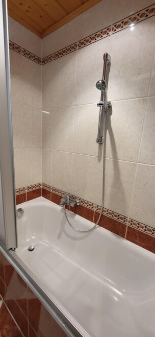 no. of toilets: 1, no. of bathrooms: 1, shower or bathtub, bathtub, shower, running hot/cold water, toilet, bath