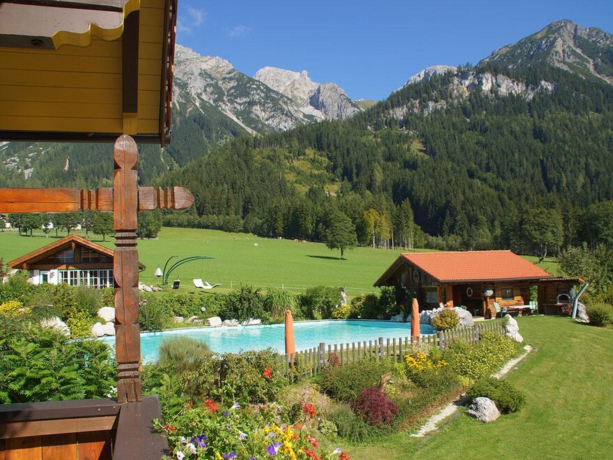 Our organic farm Bio Bauernhof Simonbauer, awarded with 4 flowers, is situated on the plateau of Ramsau am Dachstein in a sunny and quiet location, surrounded by colourful flowers and green fields. The gorgeous mountain panorama around our house is one of the reasons making this place an oasis of peace and relaxation.