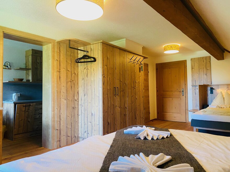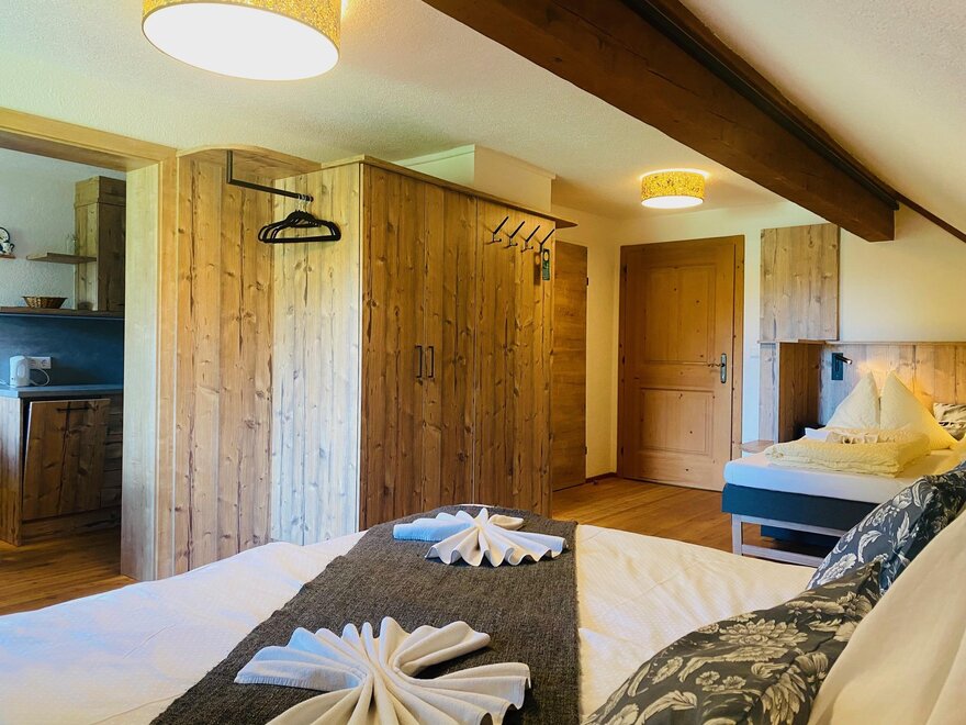 Our bright holiday flats with fully equipped kitchens offer sufficient room for the whole family. Guests of our apartments can take advantage of the delivery service of our own organic bakery or enjoy the buffet breakfast.