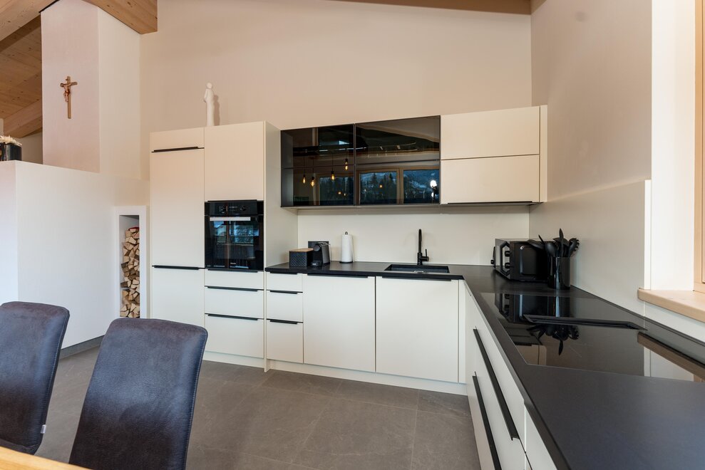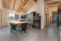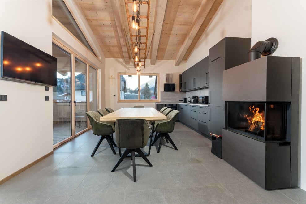 private entry, kitchen utensils, living room, essentials (towels, bed linen, soap, toilet tissue), wooden or parquet floor, separate bedroom/s: 3, non-smoking room/apt., balcony furniture, garden furniture, balcony, coffeemaker, wood oven, hairdryer, heater, fireplace, refrigerator, separate bedroom/living room, modern furnishing, kitchen, feather beds, dishwasher, furniture suite, bedding, good as new room/apt., high chair, vent hood, fire extinguisher, oven, no pets allowed, dishes available, towels available, family room/apt., electric stove, anteroom, central heating, open plan kitchen/living room, bed linen available, TV