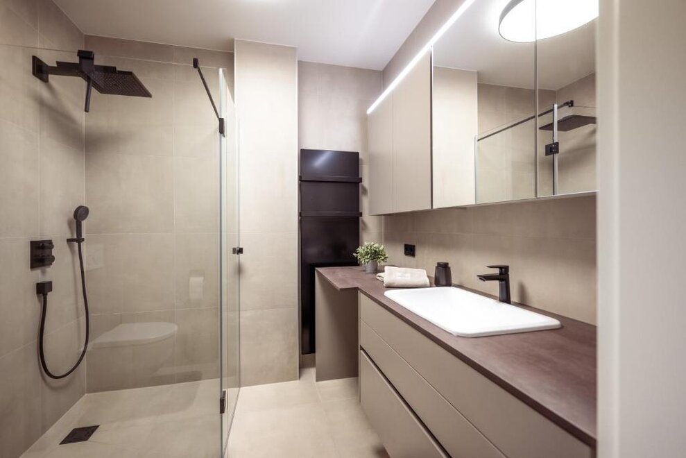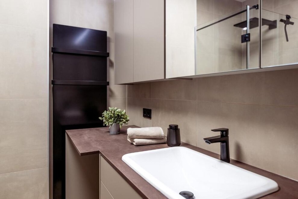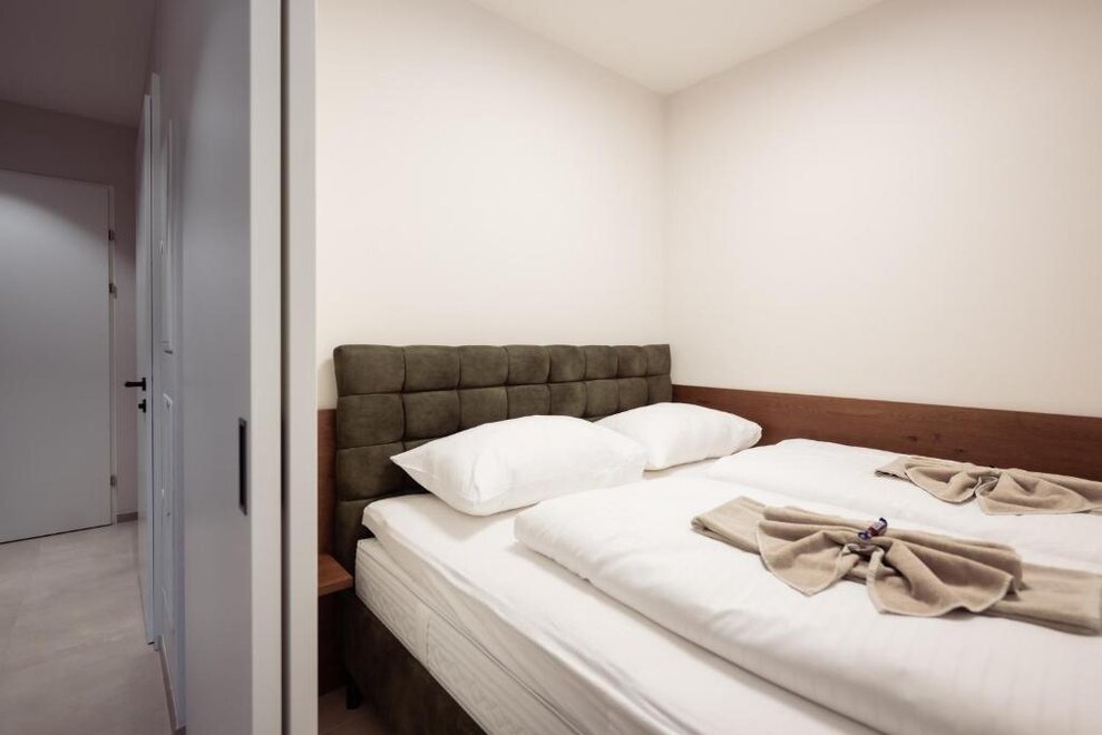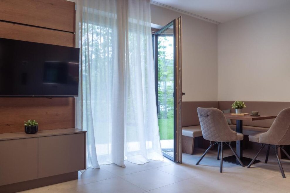 The modern furnished apartmentwith 50m2 living space offers you a modern spacious living room with kitchen and a dining area. The kitchen is fully equipped (e.g. fridge/freezer, dishwasher, coffee machine, cooker/oven etc.). If required, the sofa in the living room can be used as a double bed for 2 more people.
