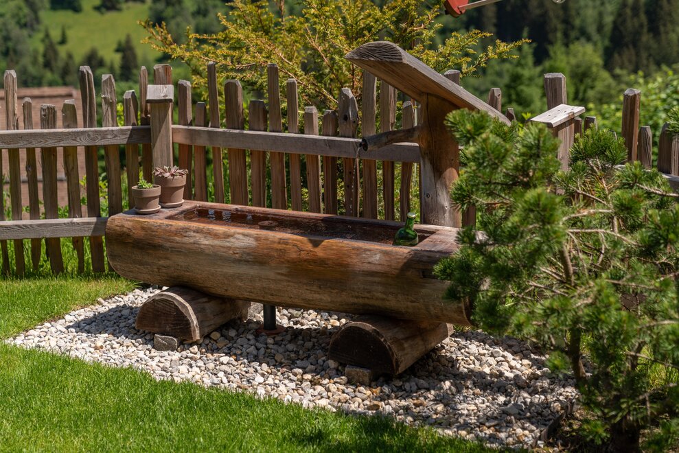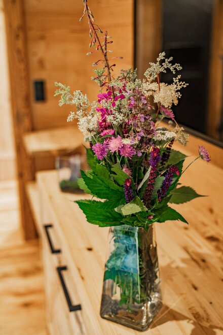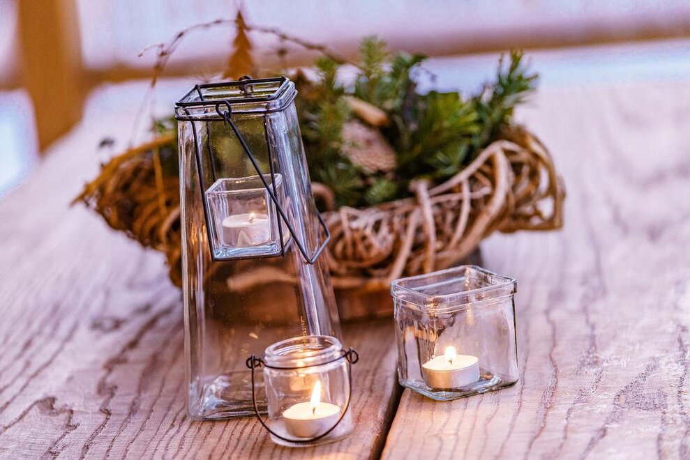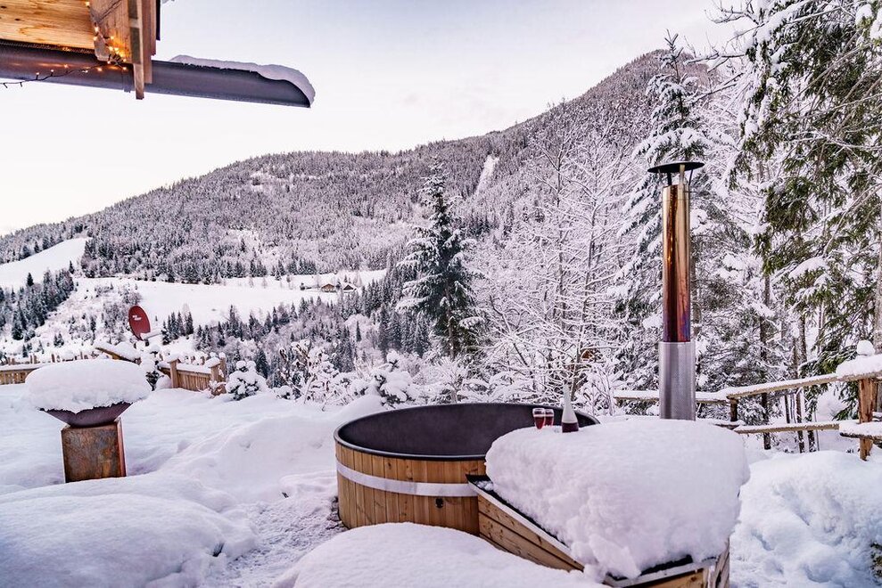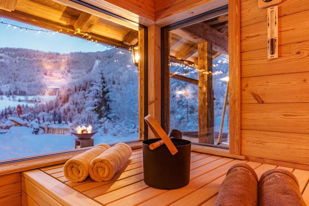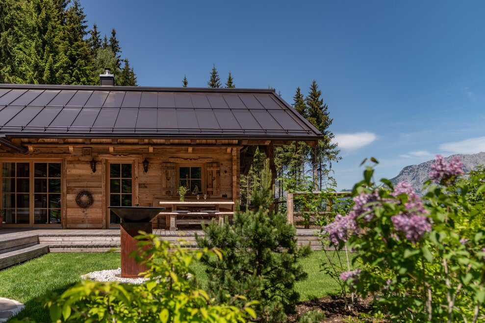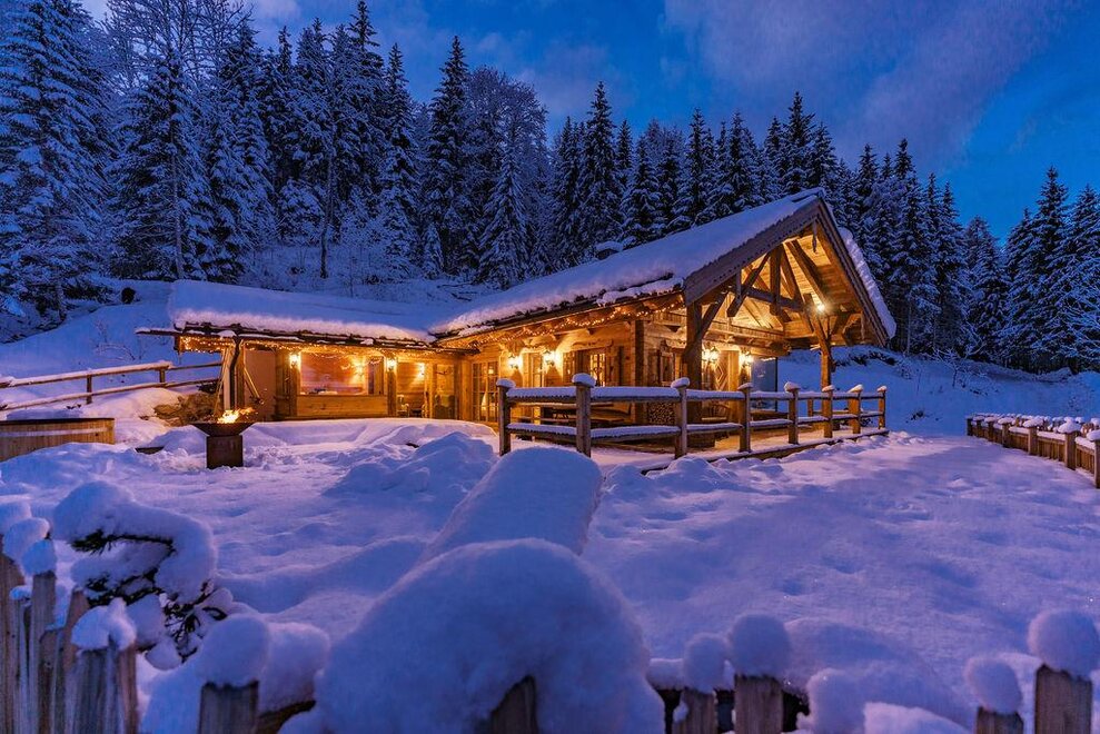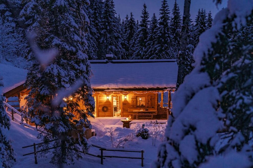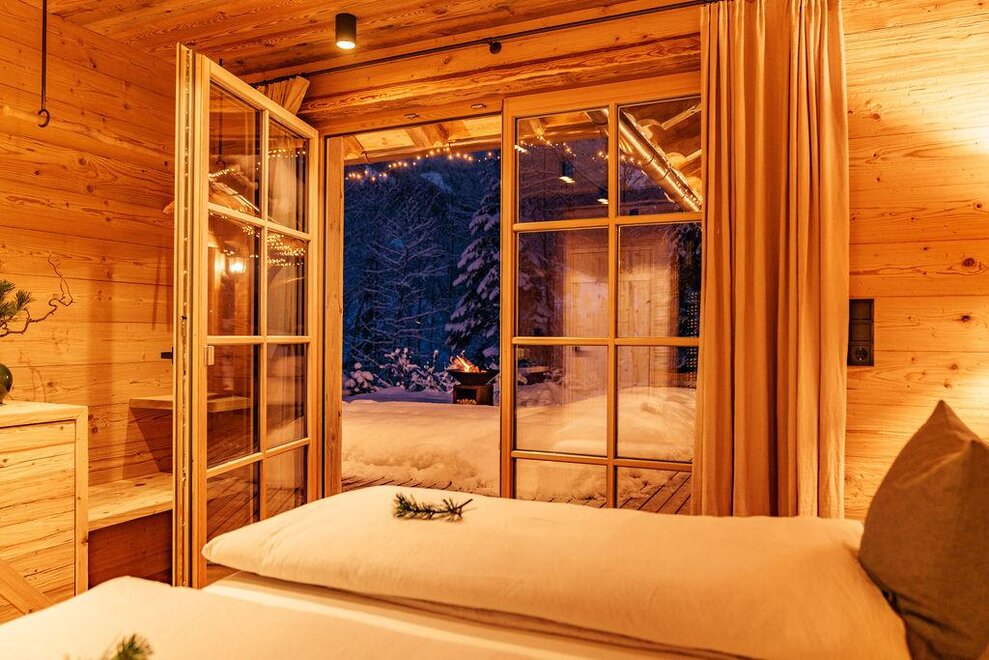 The warm wood of the rooms, cozy loden fabric, and calming stone are a delight for tired eyes and mind. The natural smell of old wood in the Chalet Alm and the rustic furnishings contribute greatly to relaxation. It is wonderfully cozy to look out the large windows towards the mountains, listen to the crackling of the fireplace, and watch the snow crystals sparkle in the winter sun.