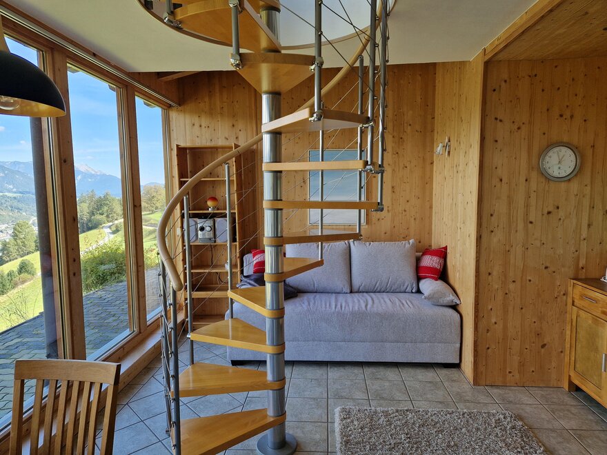 The Apartment Panorama offers from all sides a wonderful view of nature. It is featured with an entrance hall, one bedroom with a spacious king-size bed, a living room with two double sofa beds and a comfortable, fully-equipped kitchen with dining area and couch. The bathroom furnished with a shower and a toilet. All this provides lots of comfort and space for a relaxing holiday.