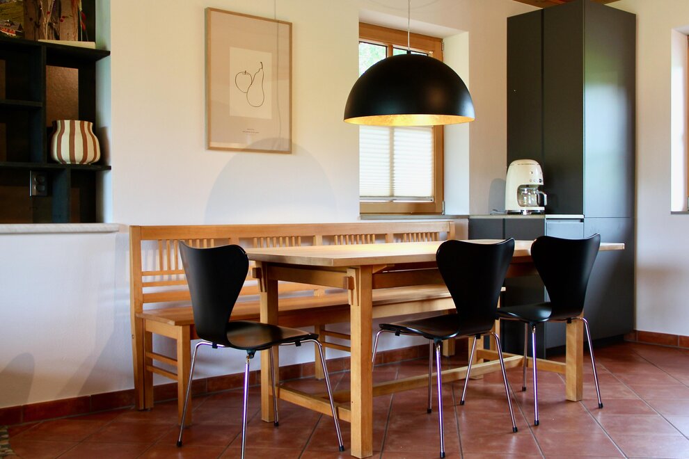 electric stove, non-smoking room/apt., cable TV, quiet room/apartment, towels available, separate living room, microwave, meadow, furniture suite, kitchen, refrigerator, separate bedroom/s: 2, family room/apt., WiFi, garden barbecue, wooden or parquet floor, closet, living room, dishes available, oven, coffeemaker, TV, terrace, kettle, garden, cooking possibilities, high chair, balcony furniture, garden furniture, hairdryer, essentials (towels, bed linen, soap, toilet tissue), smoke detector, desk, kitchen utensils, socket close to bed, separate kitchen, dish sink, bedding, central heating, dining room, separate bedroom/living room, toaster, freezer compartment, tiled or marmor floor, open plan kitchen/living room, Größe m²: 100, good as new room/apt., pets permitted on request, bed linen available, dishwasher, modern furnishing, heater