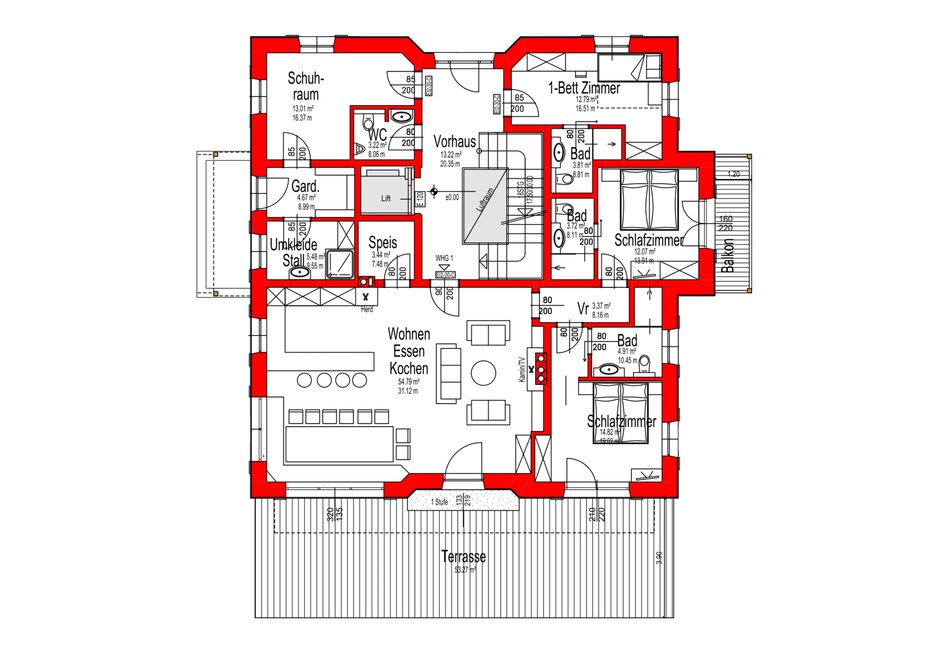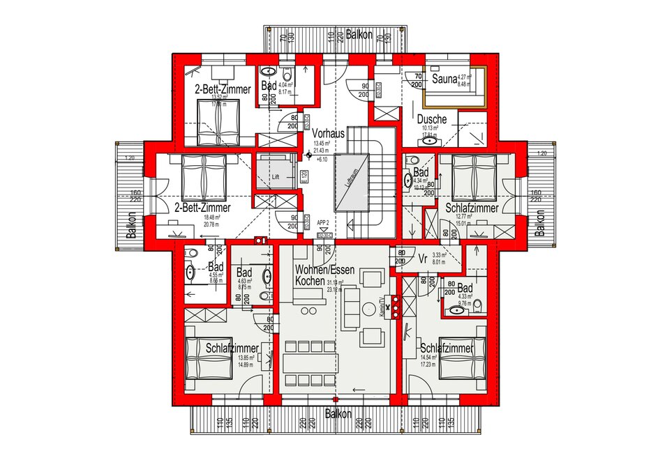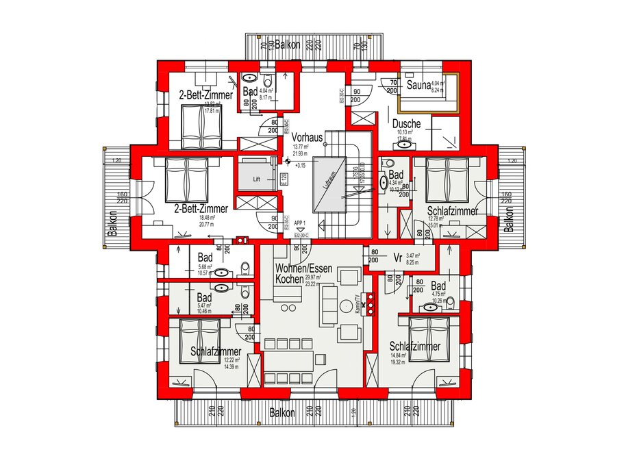 -> twelve bedrooms with comfort double beds (180x200 cm)