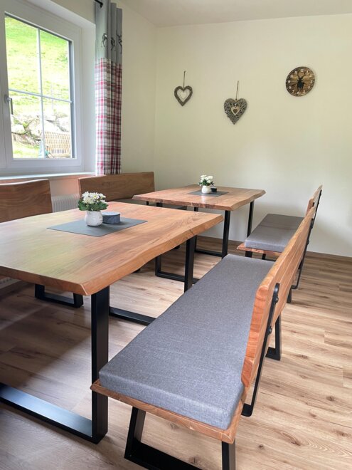 The holiday home Rotenbichler was renovated in 2025 and offers space for up to 10 people. 5 bedrooms, 3 bathrooms, 1 fully equipped kitchen with dining area, 1 living-dining room, 1 cloakroom, and 1 ski and boot room with washing machine provide more than 200m2 of ample space for your vacation. On 2 balconies and a sun terrace with barbecue facilities, it invites you to linger. In the garden, children can play freely. Several parking spaces are available for you directly at the house free of charge.