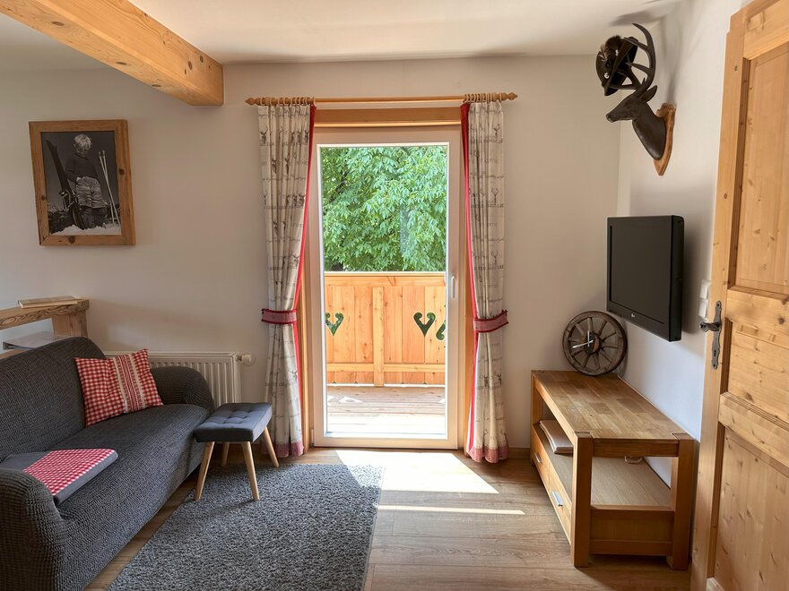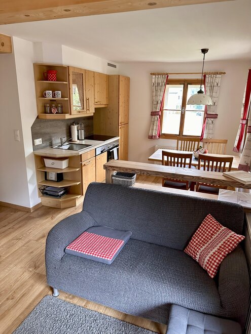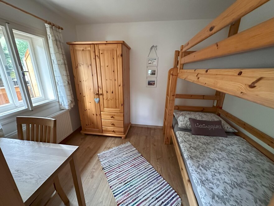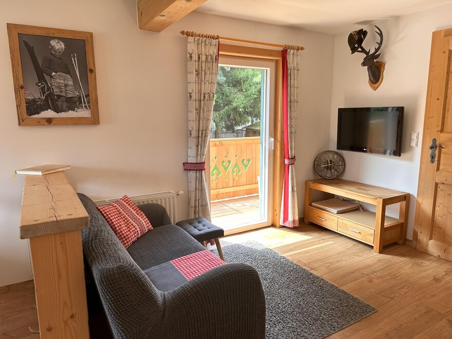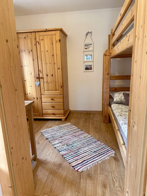 Our lovingly decorated non-smoking apartment with solid wood furniture is perfect for 2-4 persons (44 m²) and equipped with 2 separate bedrooms (1x double bed and 1x bunk bed), 1 bathroom, balcony and a kitchen with dining area and couch. Bread service, free WiFi, bed linen, towels, ski storing and ski boot drying room available.