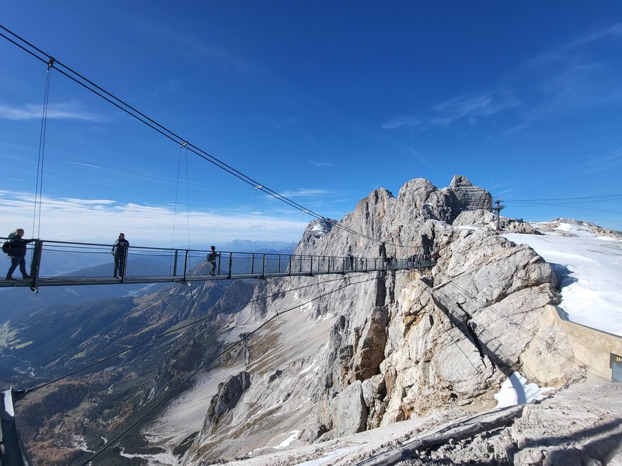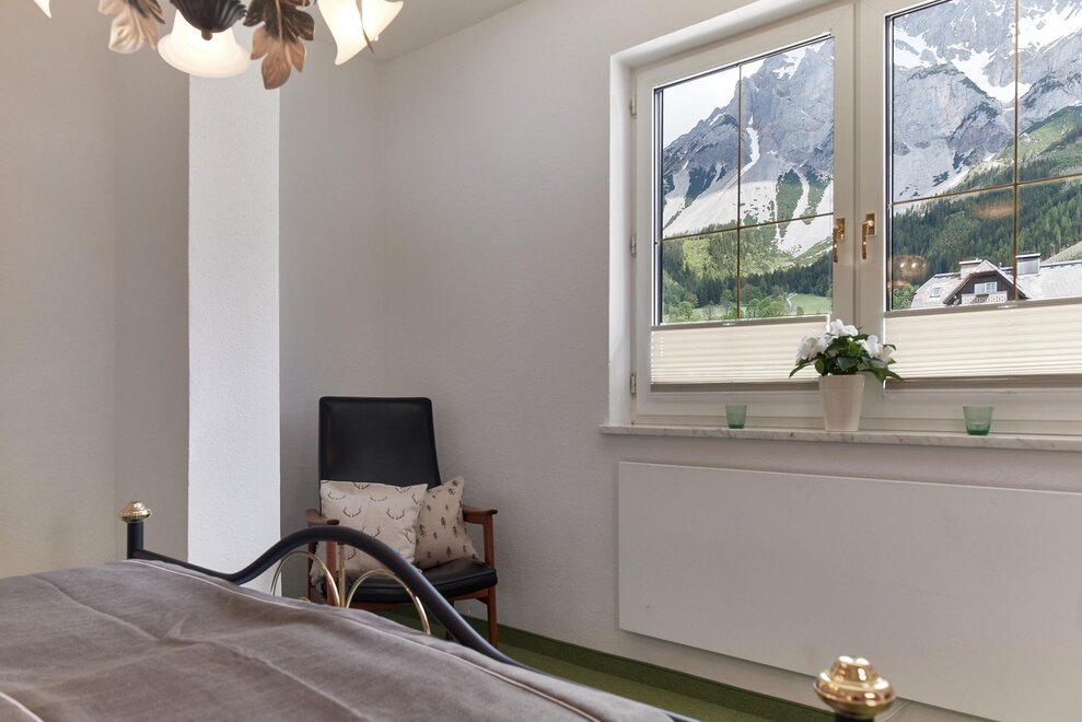 Looking out from the large south balcony you have the mountain range of Schladminger Tauern and Kulmberg with the ski jump in front of you. You wake up in the bedroom with a view of the Dachstein Massif to the north.