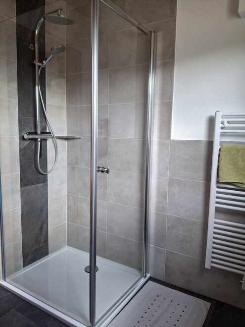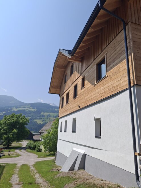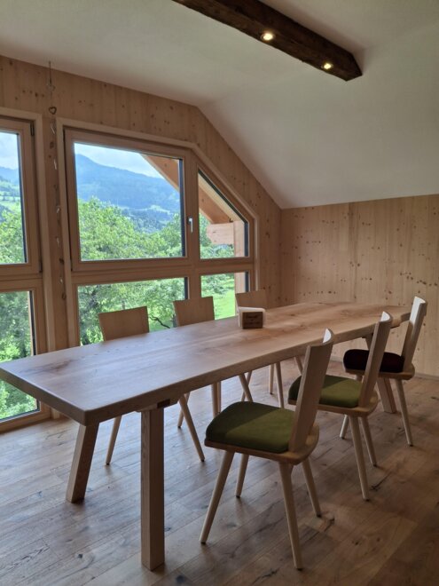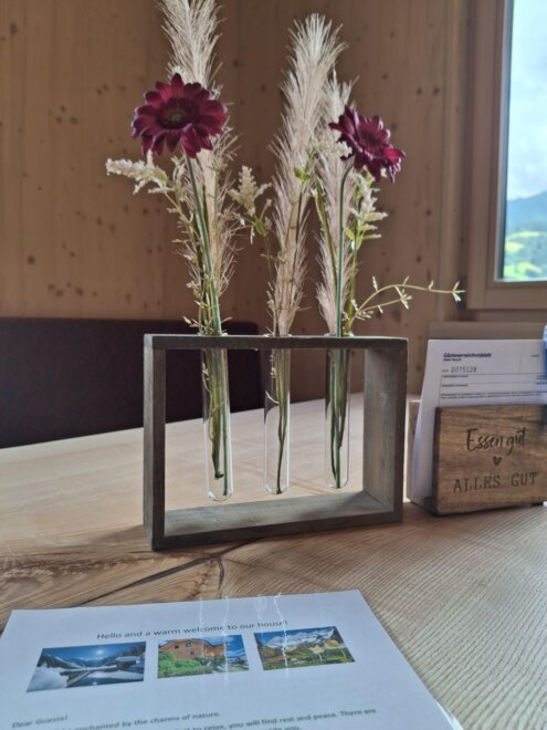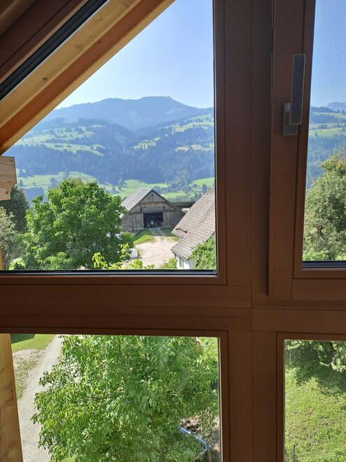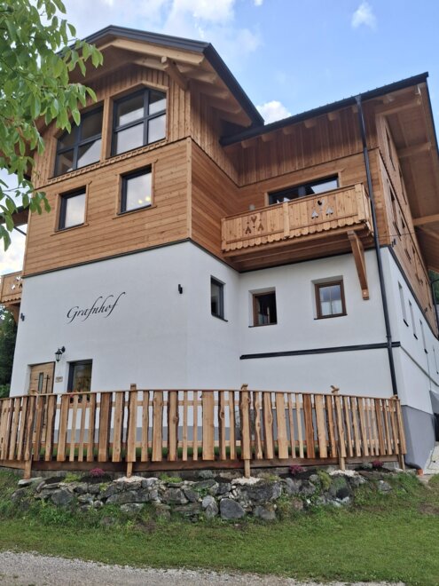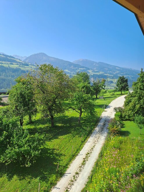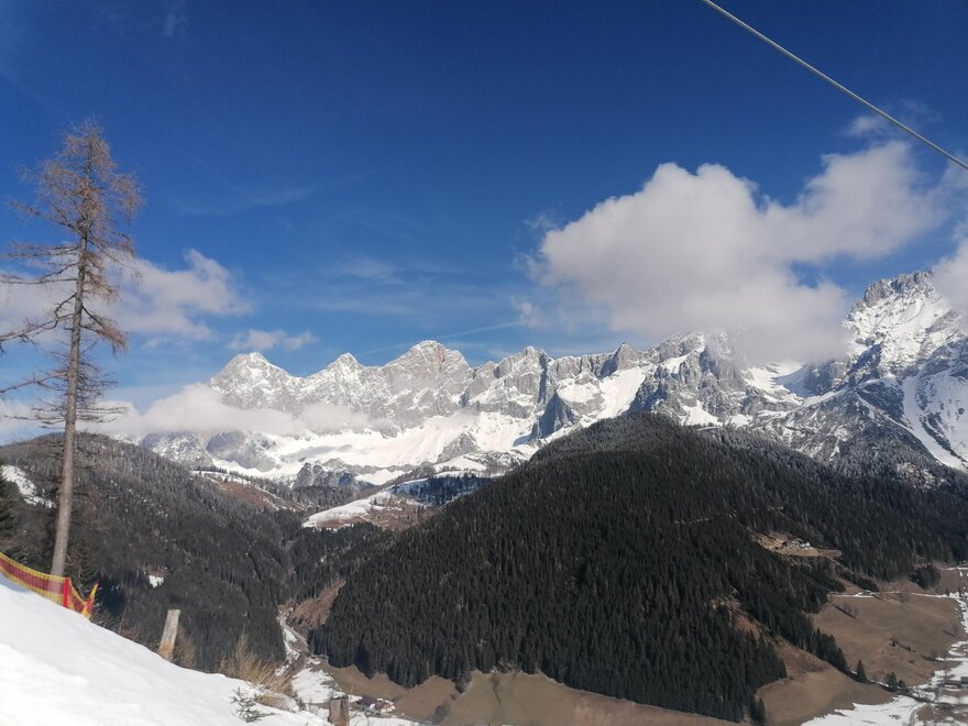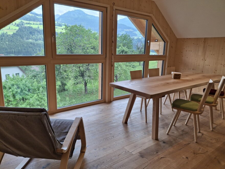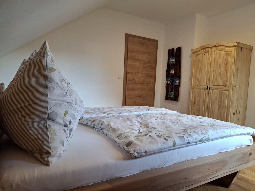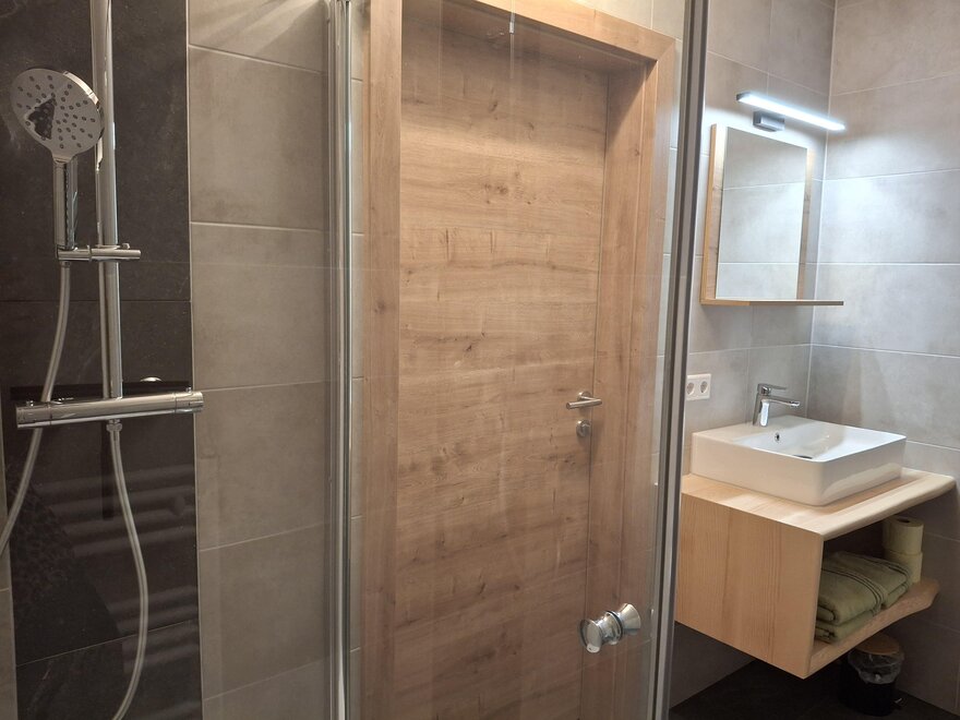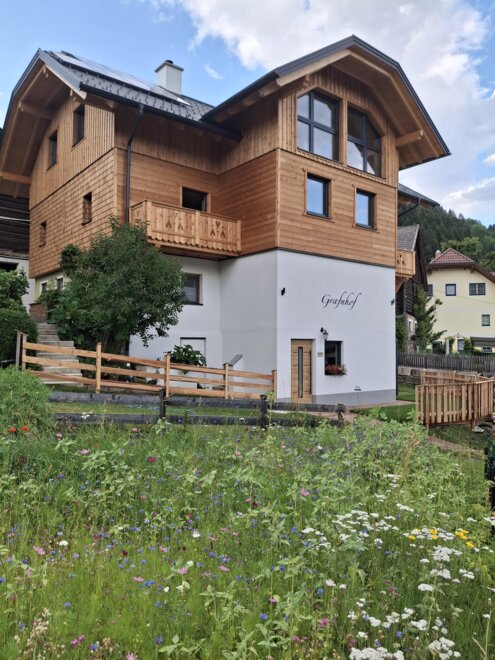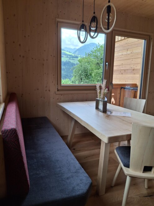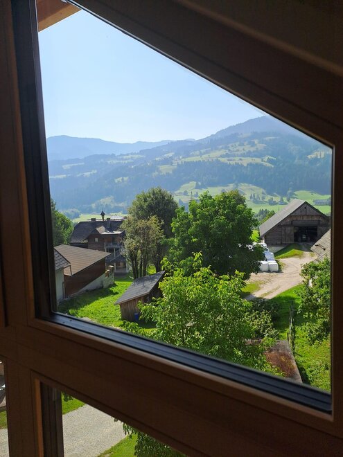 The Bergblick apartment offers 62 m² of space for 4 people. It features 2 cozy bedrooms (1x double bed, 2x single beds), a fully equipped kitchen-living room with a sofa, flat-screen TV, a modern dining table for 4 people, separate toilet and bathroom; enjoy the view from your private balcony.
