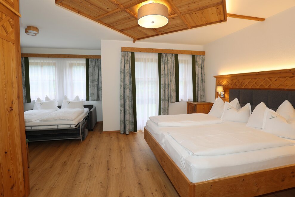 Our comfortable and spacious non-smoking rooms (between 25 and 32 m²) are all equipped with shower and toilet (partially separated), flat-screen TV, cozy seating area, and free Wi-Fi. We have put a lot of thought into the decor and chosen wood as the most important building material. What you will enjoy the most, however, is the balcony or terrace, which each room features, offering a wonderful view of the Schladminger Tauern and the Dachstein.