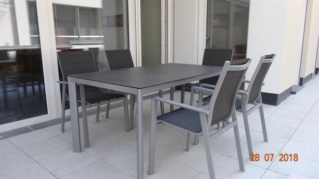 separate bedroom/living room, TV, washing machine, dishes available, Größe m²: 85, non-smoking room/apt., cooking possibilities, heater, store room, WiFi, terrace, kettle, low-noise room/apart., toaster, toiletries, coffeemaker, dish sink, cable TV, towels available, bed linen available, good as new room/apt., anteroom, vent hood, furniture suite, kitchen, refrigerator, internet connection available, dryer, kitchen utensils, separate bedroom/s: 2, bedding, hairdryer, modern furnishing, garden furniture, freezer compartment, dishwasher, luxurious furnishing, no pets allowed, iron, closet, garden, oven, meadow
