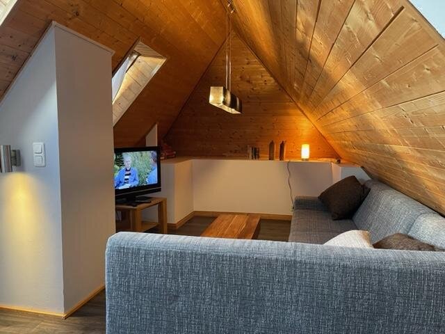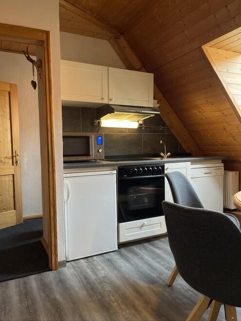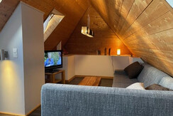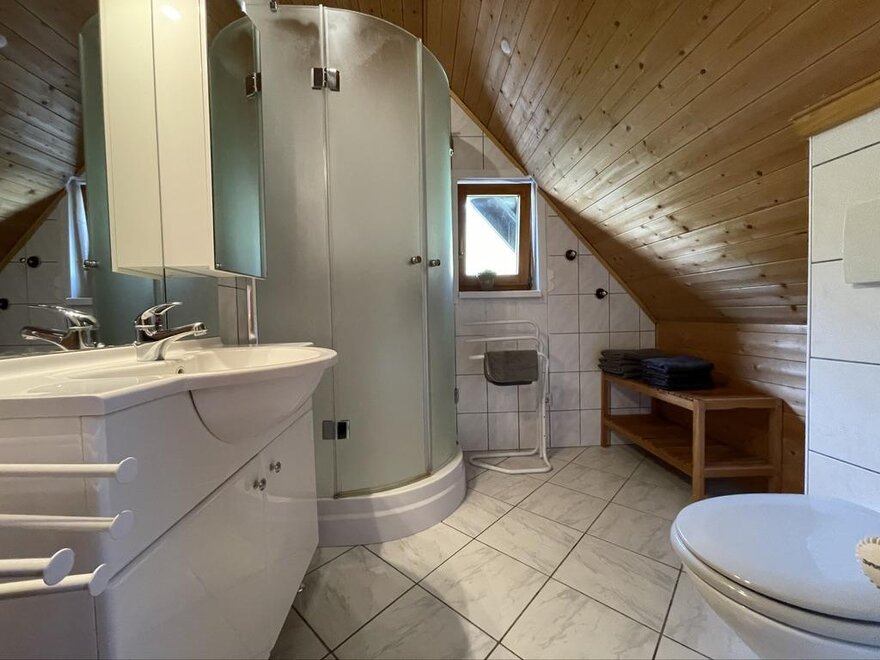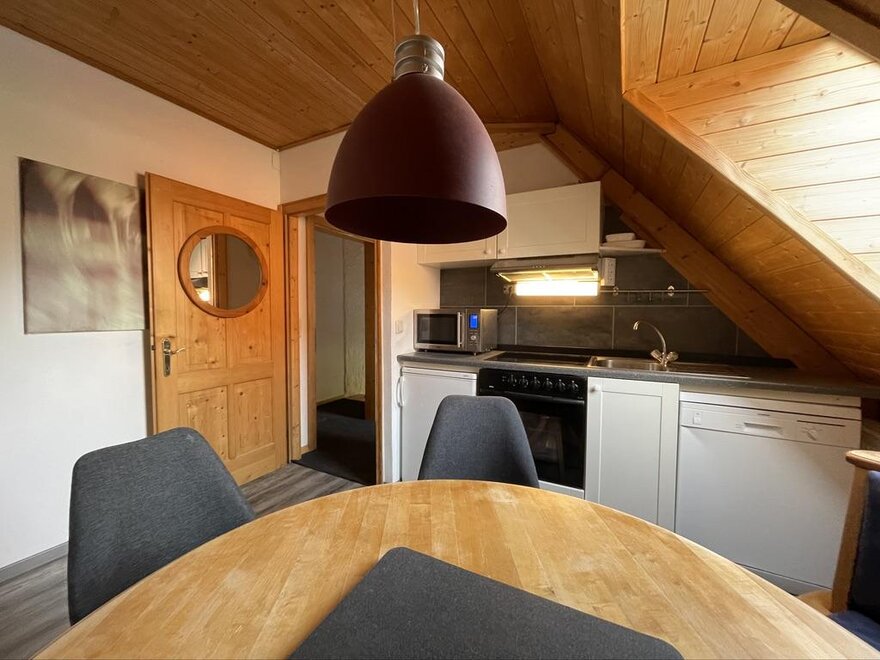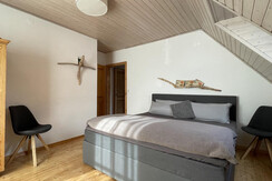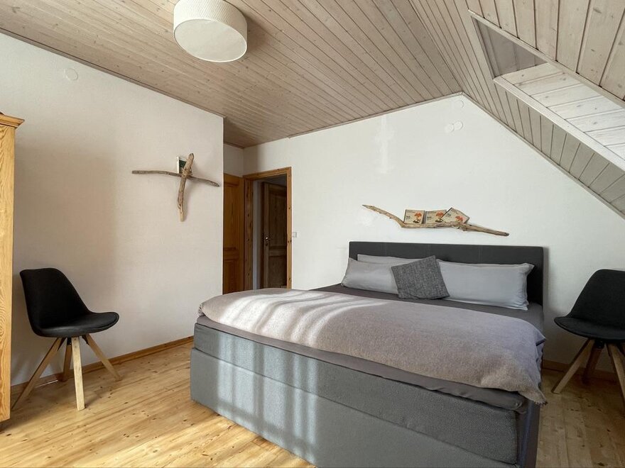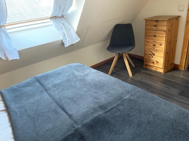 You will find our lovingly furnished holiday apartment on the 1st floor of our house. Spread over 2 floors, it features a balcony, 2 bedrooms, a living area with a corner sofa, a kitchen with a dishwasher, a hallway, and a bathroom with a shower/WC.