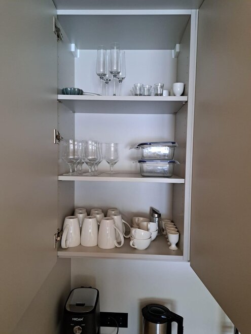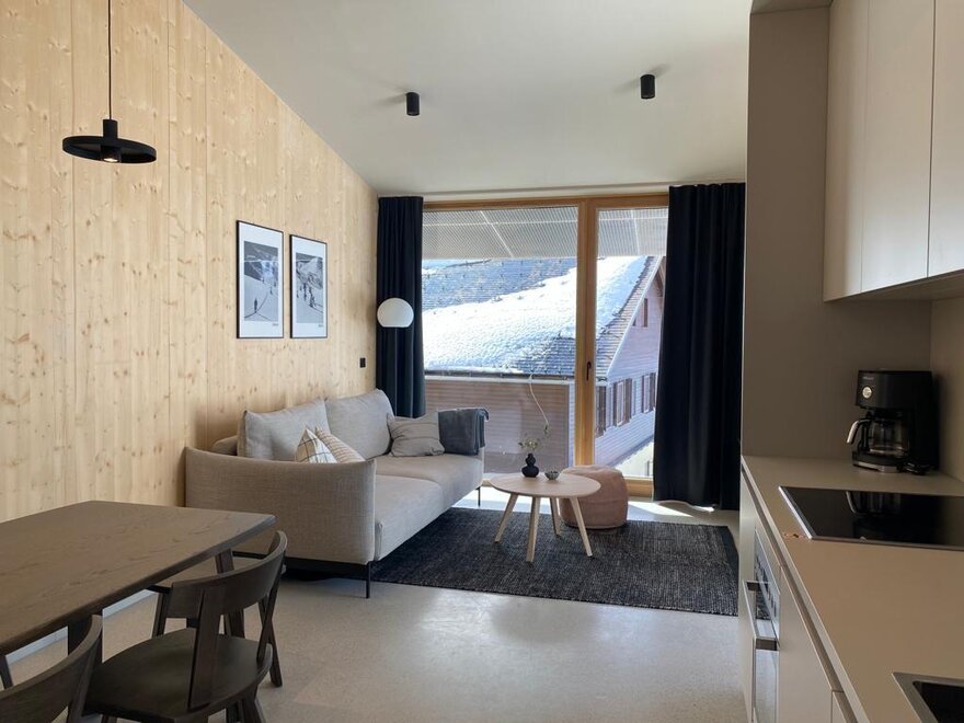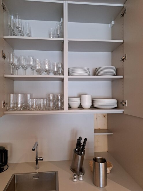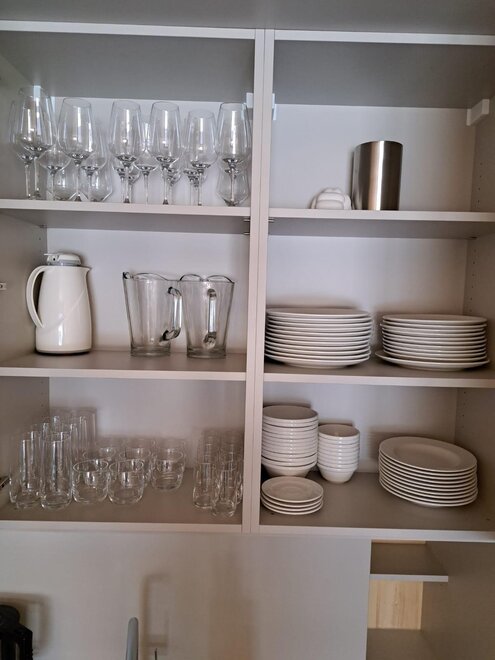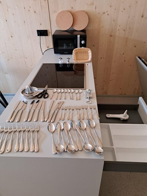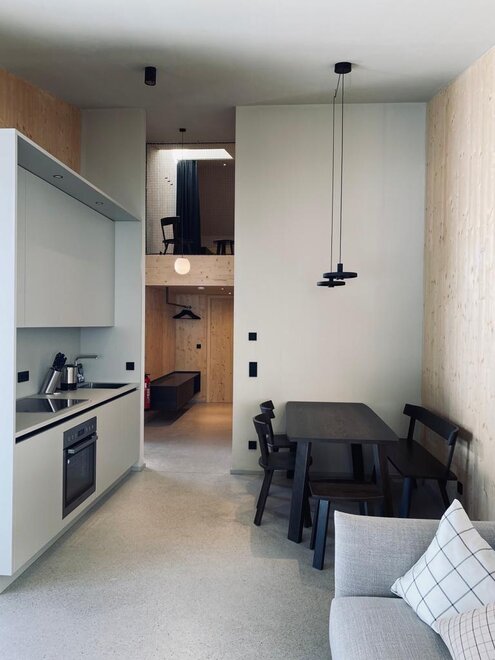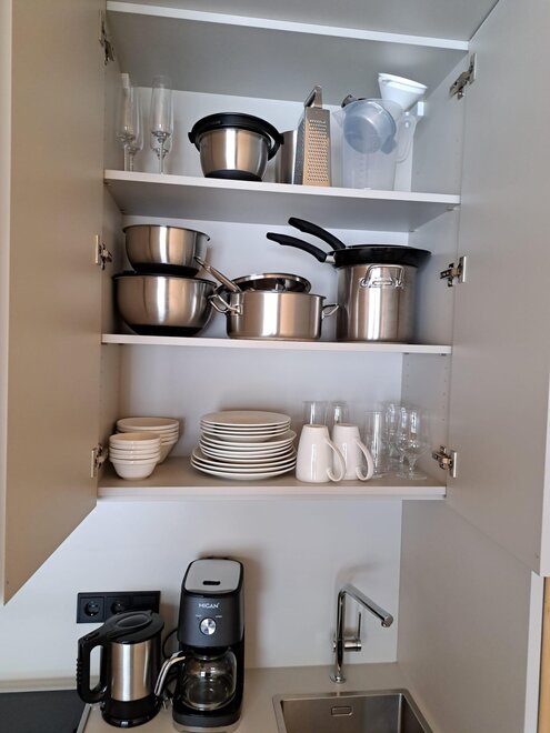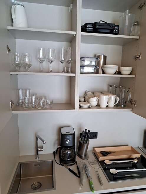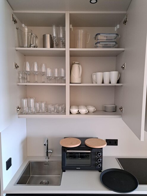separate living room, WiFi, hairdryer, smoke detector, balcony furniture, weekly cleaning, cooking possibilities, separate bedroom/living room, modern furnishing, essentials (towels, bed linen, soap, toilet tissue), furniture suite, dining room, electric stove, kitchen, kettle, Größe m²: 55, balcony, island kitchen, living room, dish sink, towels available, anteroom, family room/apt., toiletries, dishes available, non-smoking room/apt., central heating, good as new room/apt., heater, balcony (in some rooms), private entry, toaster, terrace (some rooms), kitchen utensils, closet, quiet room/apartment, wooden or parquet floor, bedding, bed linen available