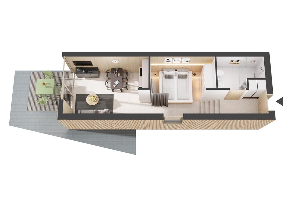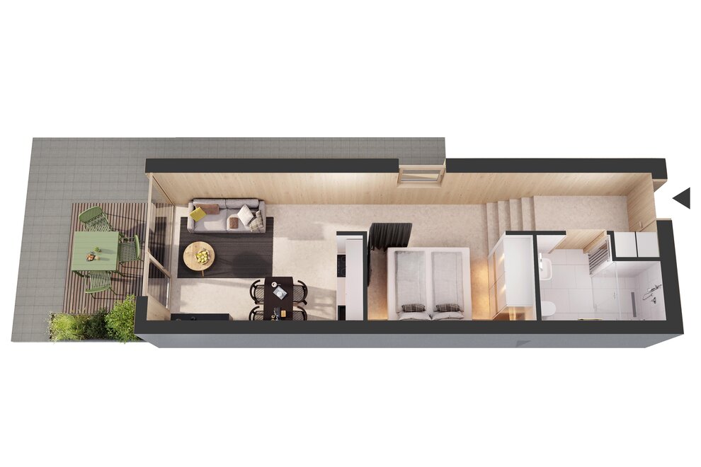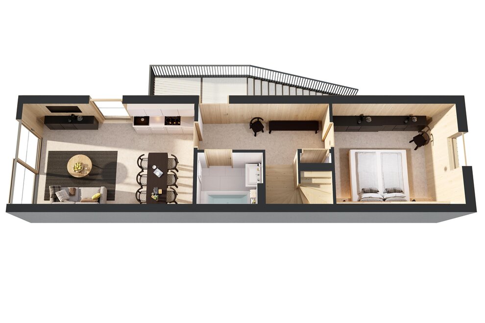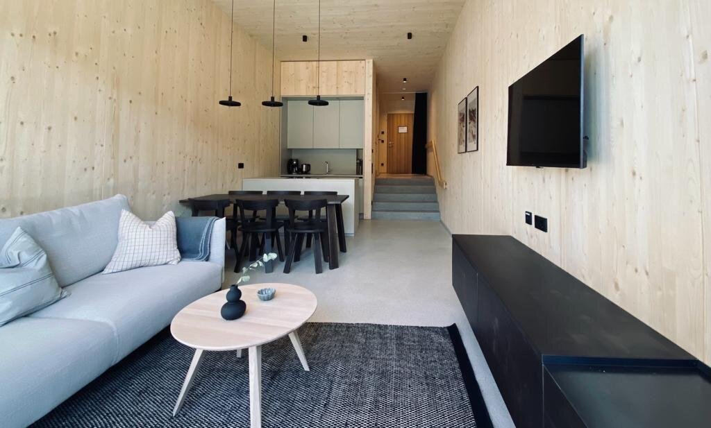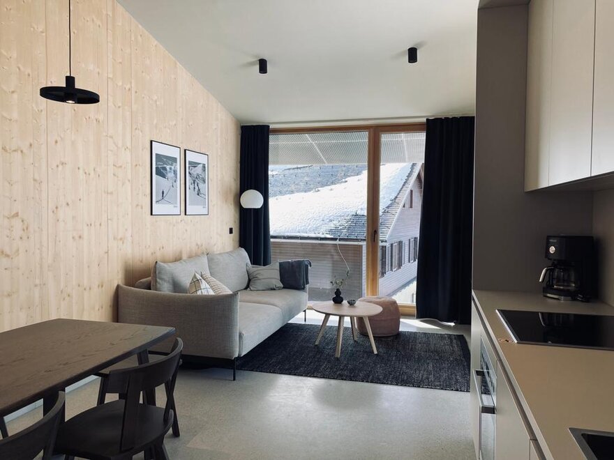 separate living room, WiFi, hairdryer, smoke detector, balcony furniture, weekly cleaning, cooking possibilities, separate bedroom/living room, modern furnishing, essentials (towels, bed linen, soap, toilet tissue), furniture suite, dining room, electric stove, kitchen, kettle, Größe m²: 55, balcony, island kitchen, living room, dish sink, towels available, anteroom, family room/apt., toiletries, dishes available, non-smoking room/apt., central heating, good as new room/apt., heater, balcony (in some rooms), private entry, toaster, terrace (some rooms), kitchen utensils, closet, quiet room/apartment, wooden or parquet floor, bedding, bed linen available