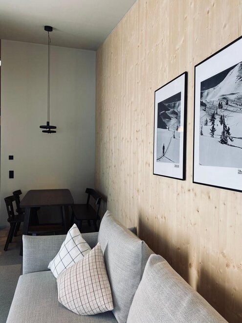 The apartment has three bedrooms with double beds and a kitchen-living room with a sofa, kitchen table and kitchen utensils. Further facilities: Shower, WC and hairdryer, TV, free W-Lan. The apartment offers space for the whole family. A baby travel cot in the living room/bedroom is available on request.