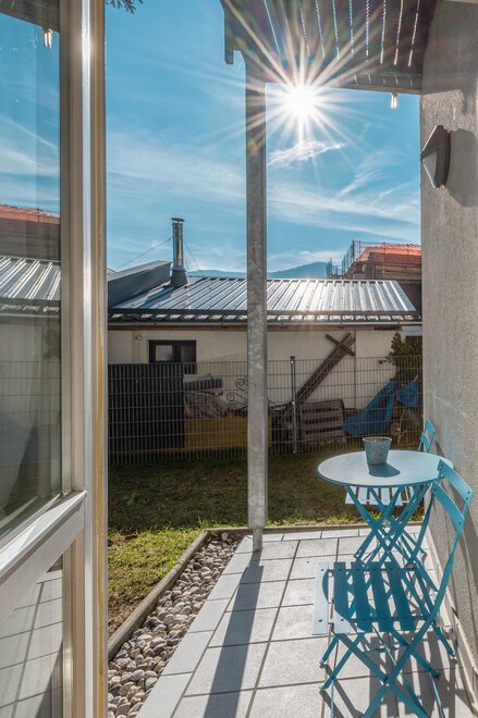 garden furniture, private entry, feather beds, TV, bathrobe on request, freezer compartment, iron, bedding, toaster, garden, bed linen available, towels available, central heating, cooking possibilities, walk-in closet, anteroom, good as new room/apt., dishes available, room/apt. with connecting door, non-smoking room/apt., terrace, kitchen utensils, kettle, fire extinguisher, essentials (towels, bed linen, soap, toilet tissue), oven, tiled or marmor floor, dishwasher, refrigerator, luxurious furnishing, separate living room, pets permitted on request, internet connection available, separate kitchen, dining room, refrigerators available, electric stove, island kitchen, coffeemaker, terrace (some rooms), quiet room/apartment, wooden or parquet floor, dish sink, vent hood, hairdryer, Größe m²: 45, heater, separate bedroom/s: 0, combined bedroom/living room, store room, meadow, kitchen