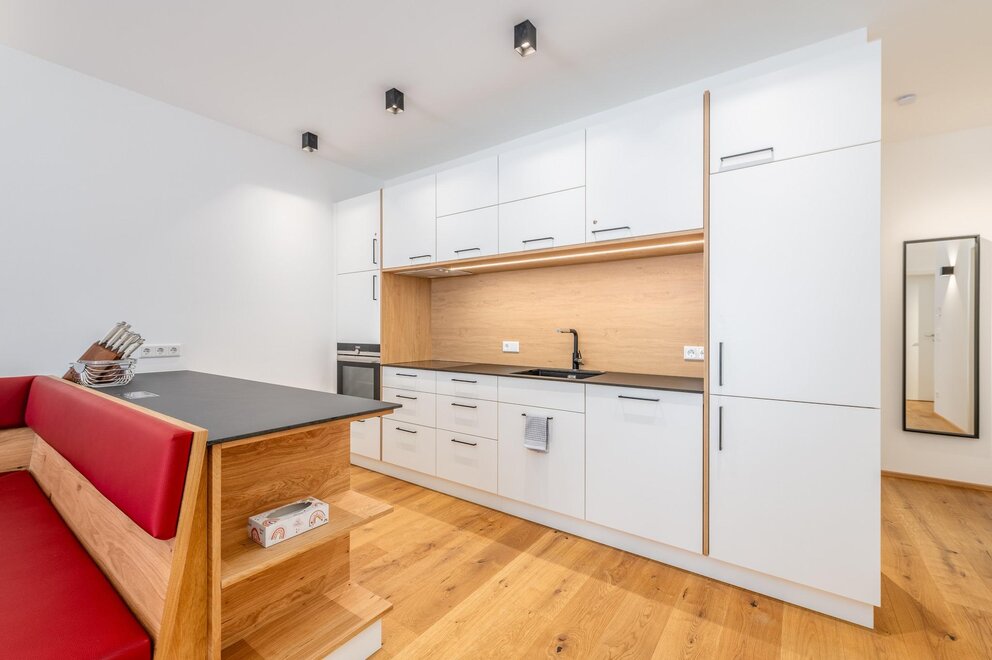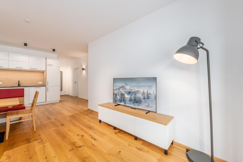 In addition to a fully equipped kitchen, this new holiday apartment features 2 bedrooms, each with a double bed. Additionally, there is a sofa bed in the living room for 2 more people.