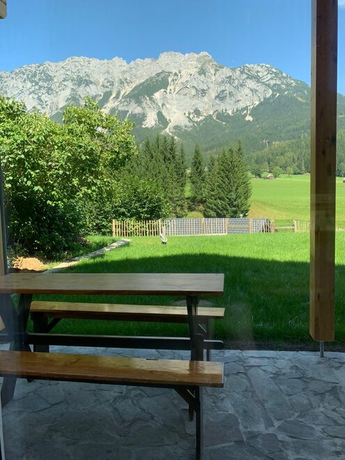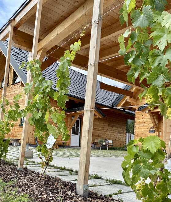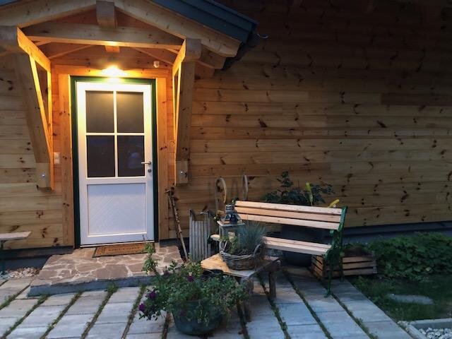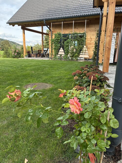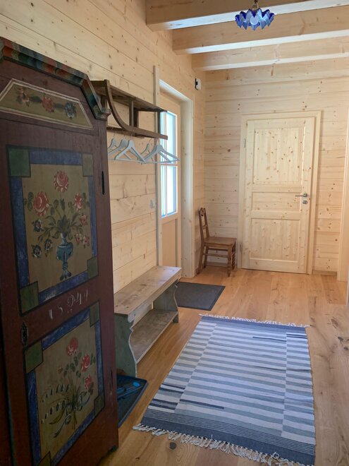 On the covered terrace, there is a table with benches, garden chairs are ready around the corner, and in summer, a gas grill is available for use. Kitchen herbs and strawberries grow next to the house, please help yourselves.
