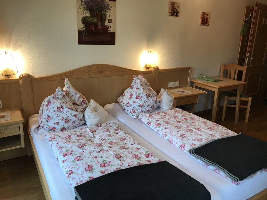 In the morning we spoil you with our rich and hearty breakfast buffet. Fresh products from our own organic farming such as homemade jams, various Cereals, spreads or homemade cake. For dinner, enjoy our good cooking with a colorful salad buffet. Three times a week you can also choose a vegetarian menu. As guests in our Apartment you can of course also book our rich and healthy breakfast and/or dinner.