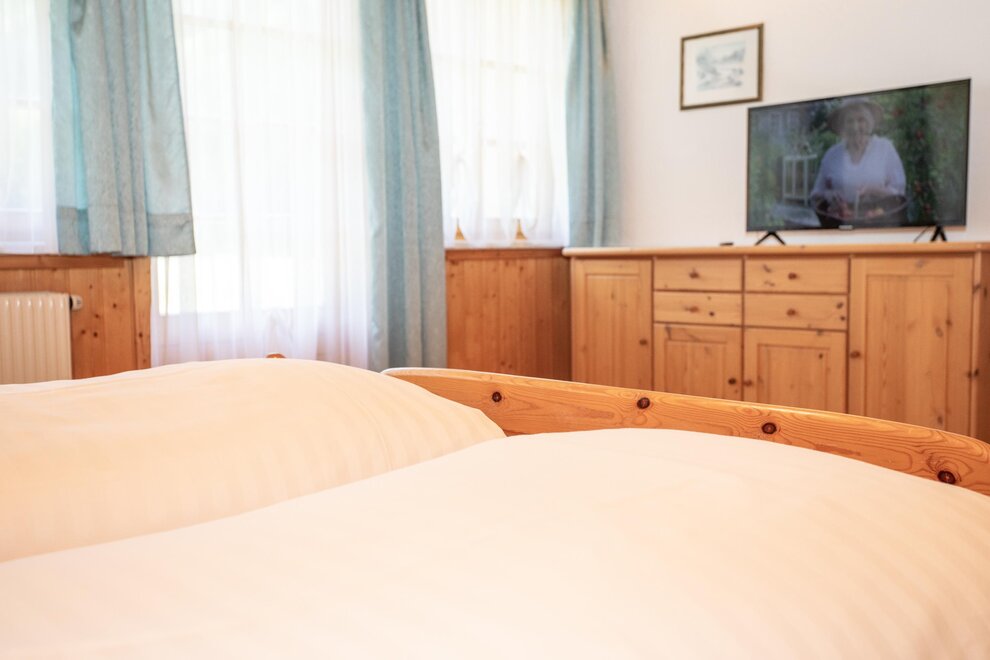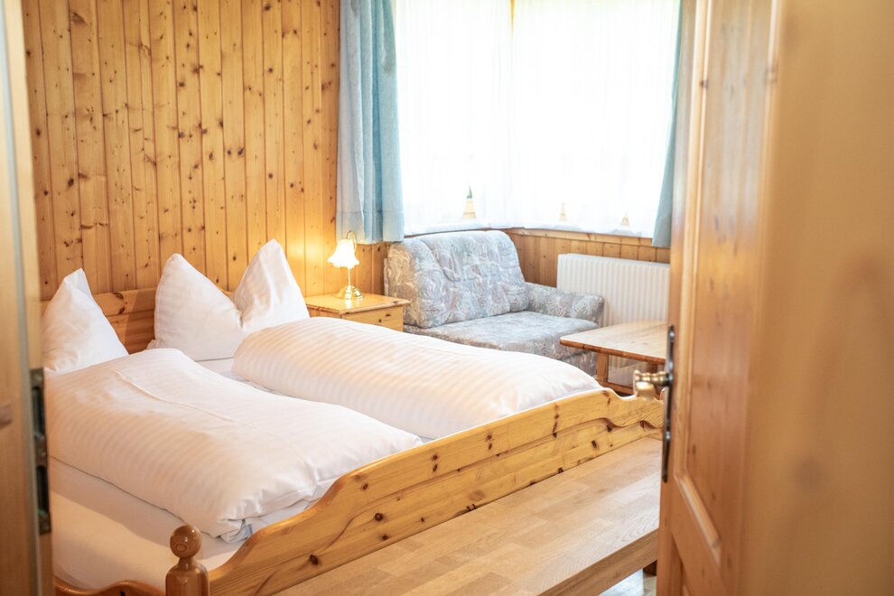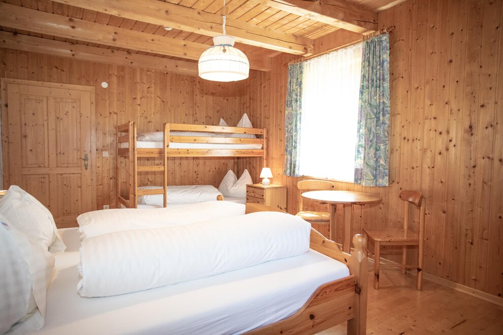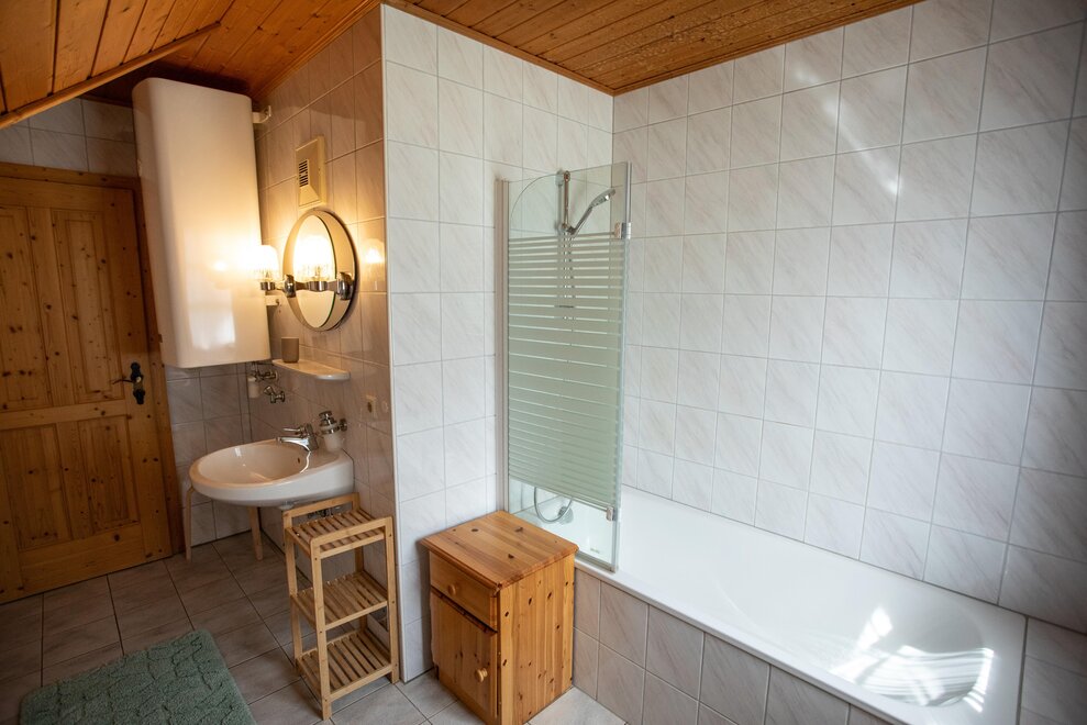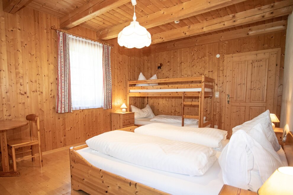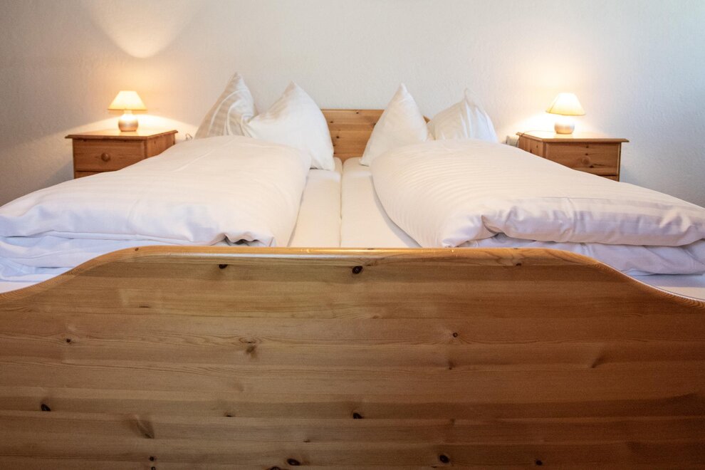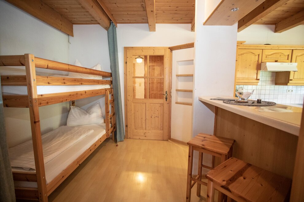 In our holiday home at Schaffergut, there are three holiday apartments in total. Each holiday apartment offers a space of 75 m² for up to 8 people: two bedrooms (with a sleeping niche featuring a bunk bed in the kitchen area), bathroom, and toilet, a fully equipped kitchen, and a balcony or terrace.