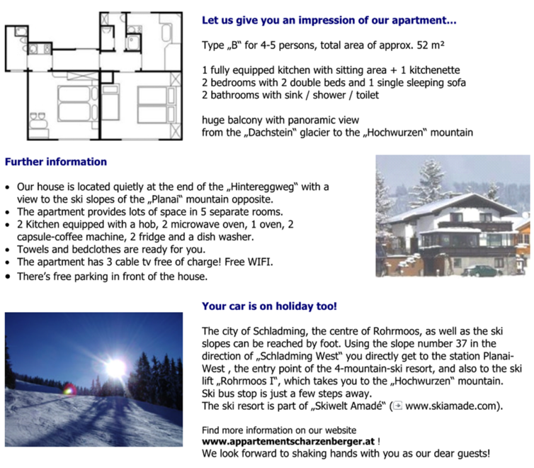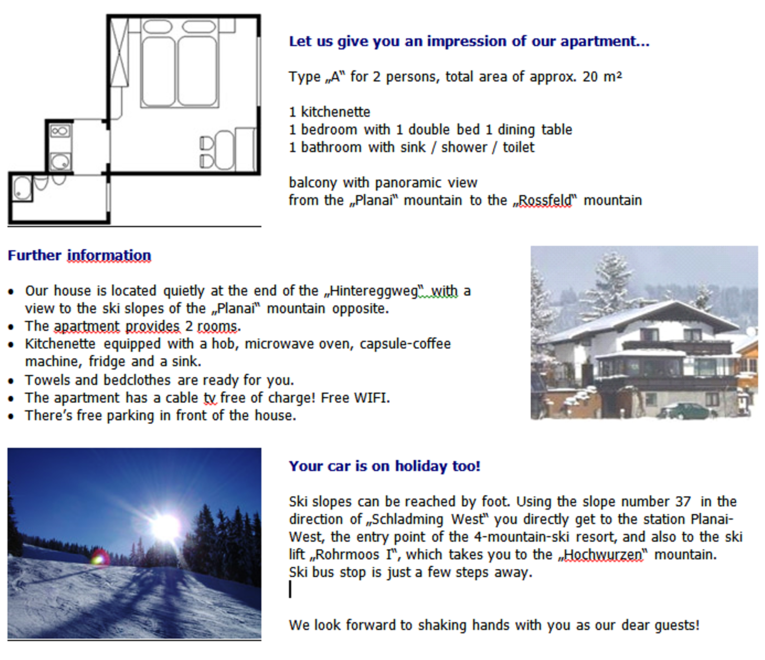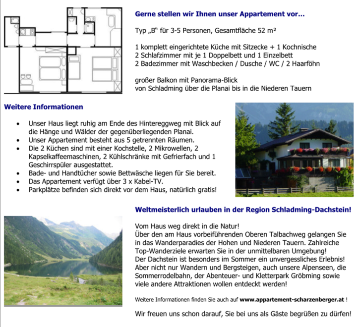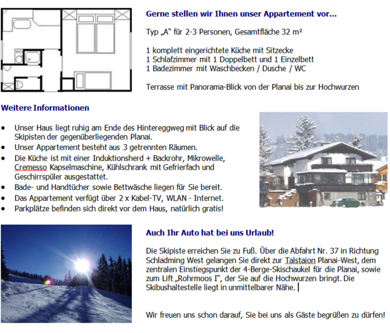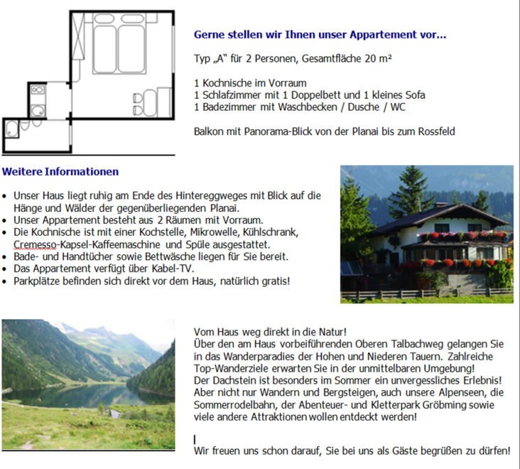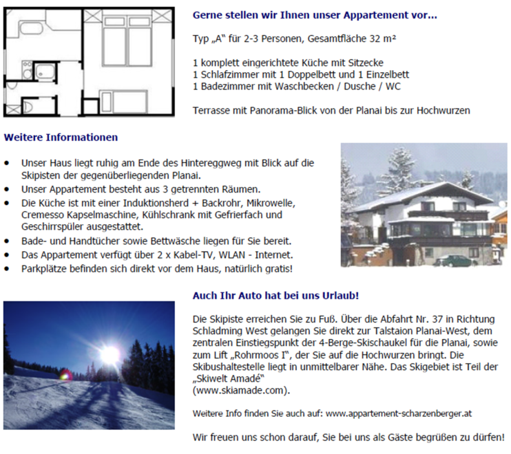 Apartment Type "A" "Schladmingblick" for 2-3 people, total area 32 m²