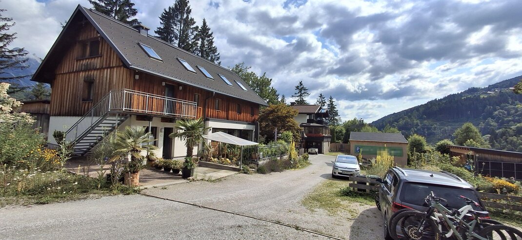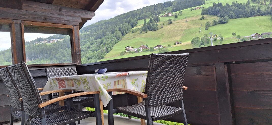 1 bathroom with sink/shower/toilet Large balcony with panoramic views from Schladming over the Planai to the Hochwurzen