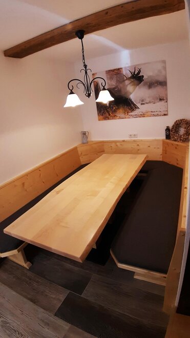Our holiday apartment "Schladminger Alm" can accommodate up to 6 people and consists of 3 double rooms, 2 bathrooms, one of which has a walk-in rain shower, 2 separate toilets, a large living room with smart TV, and a fully equipped kitchen with a rustic corner bench for cozy, shared hours.