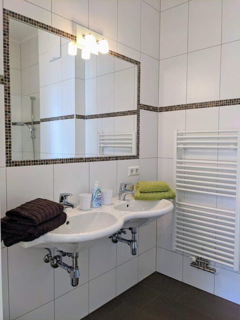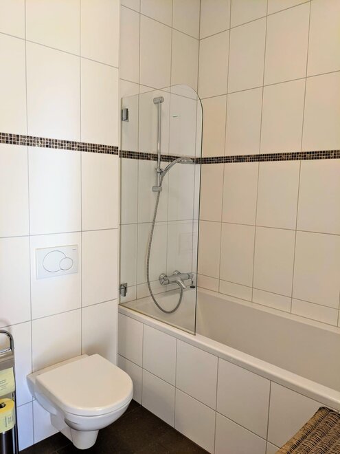 In the hall there is a second bathroom with shower and sink. And a separate toilet room.