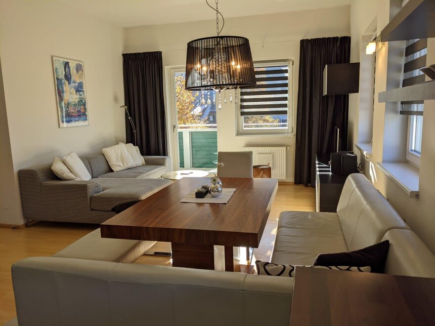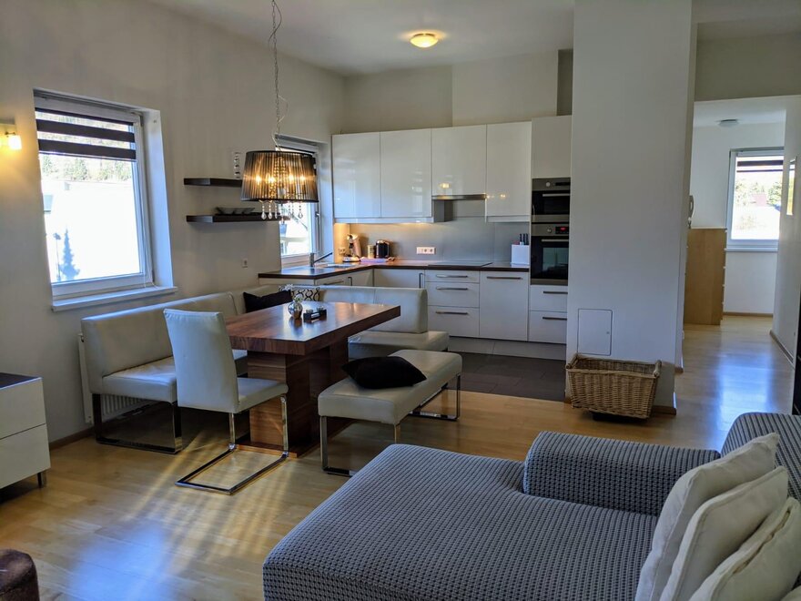 Apartment “Schladminghome” is a cozy spacious apartment that is located on the second floor of the building 'Aktivia'. The apartment is on a corner and has no upstairs neighbors and therefore high ceilings.