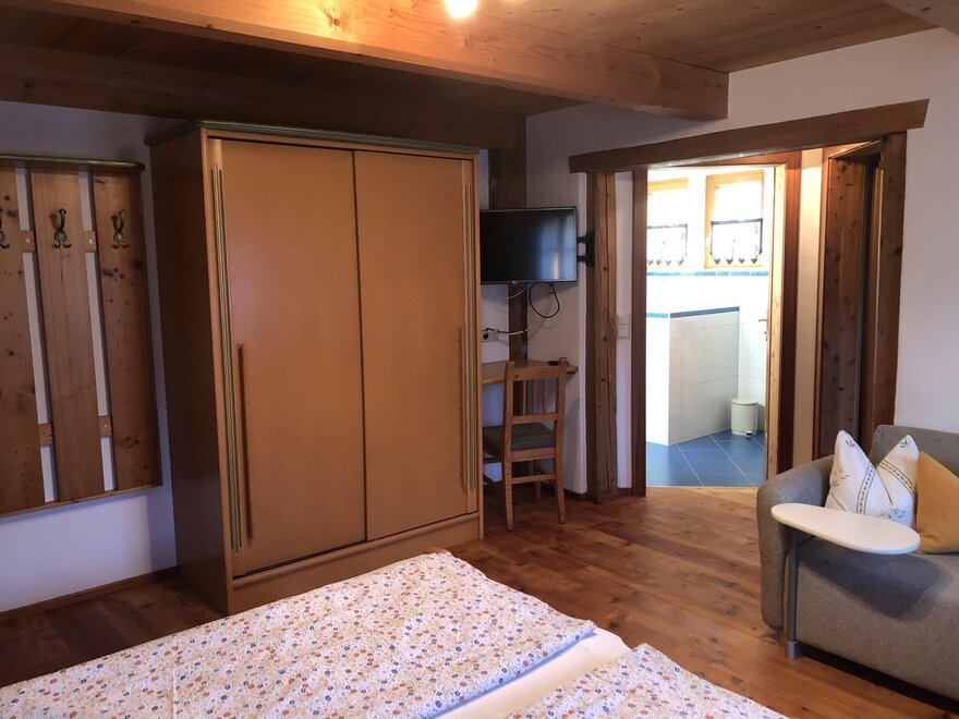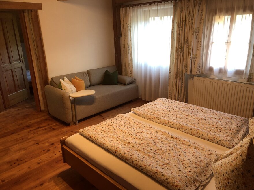 This apartment is located in our guest house on the ground floor. It consists of a large living room with a small kitchen, a bathroom with shower and a bedroom. Right in front of the guest house, there is a cozy sun terrace and a playground for kids!