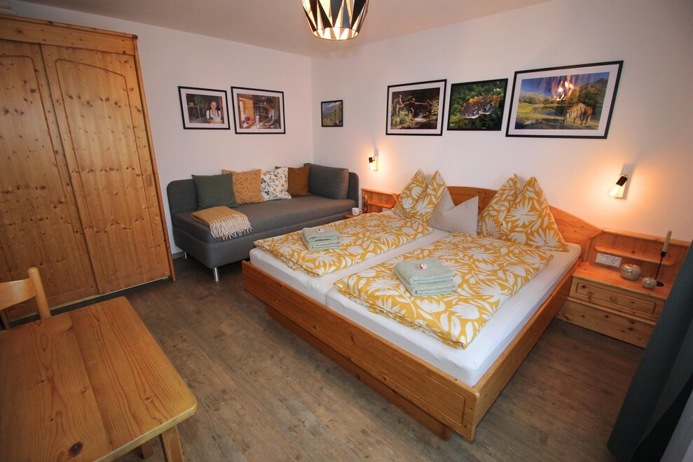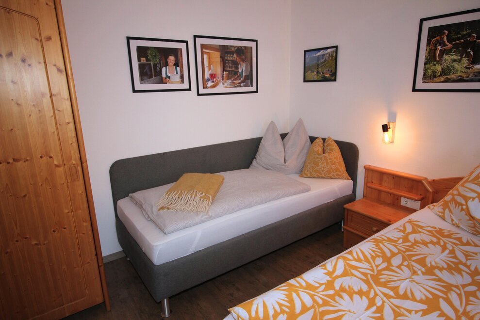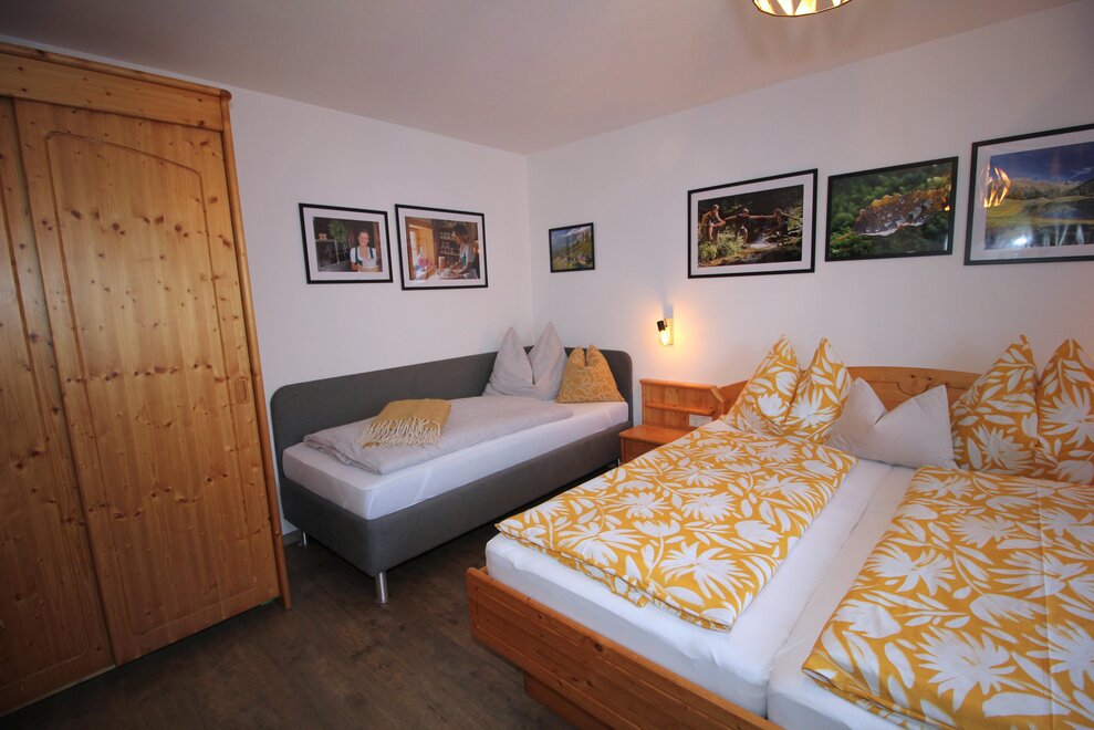 Holiday apartment with bathroom incl. washing machine, separate toilet, anteroom, large dining area, 2 separate bedrooms, one with an extra bed, possibly a cot, small outdoor area, possibility to lock skis, ground floor, centrally located.