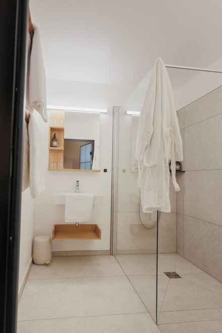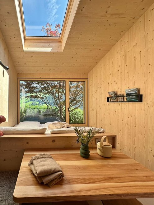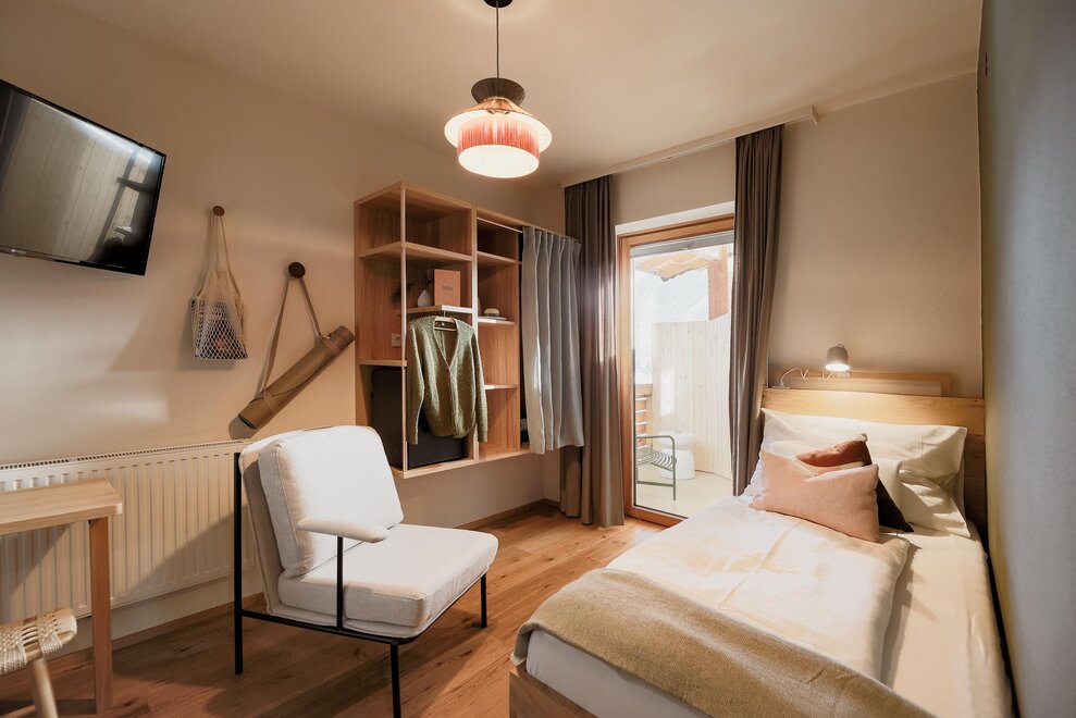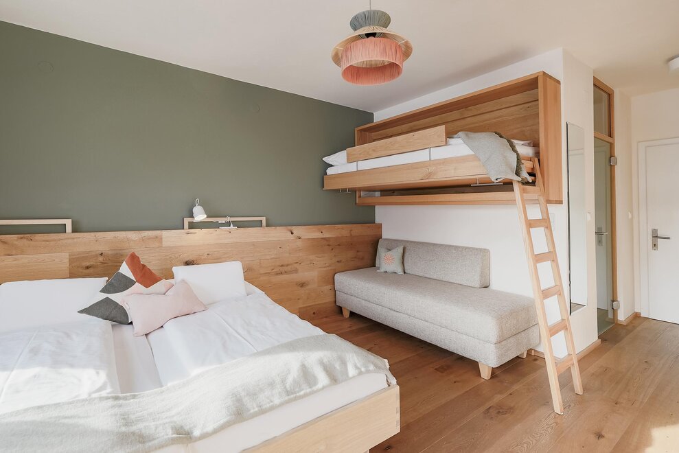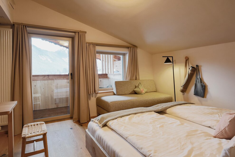 Our lovingly designed rooms are the perfect retreat in tranquil atmosphere. They are furnished with solid wooden floor and maple wood with natural finish. Own balcony and perfect for 3 people sharing. All our rooms got a fresh up in December 2024!