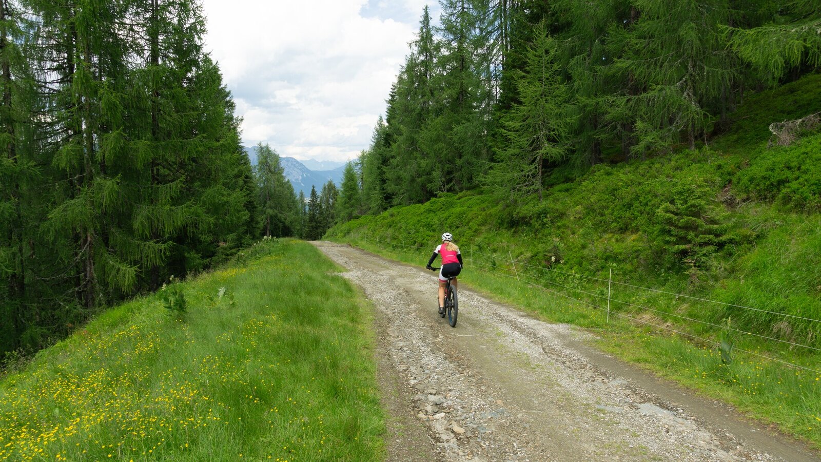 Afterwards, the long descent through the Gumpental leads down to the Styrian Bodensee. From there, the route continues on a paved road towards Ruperting and finally gently downhill back to the starting point at the valley station. This tour offers both athletic challenges and impressive views.