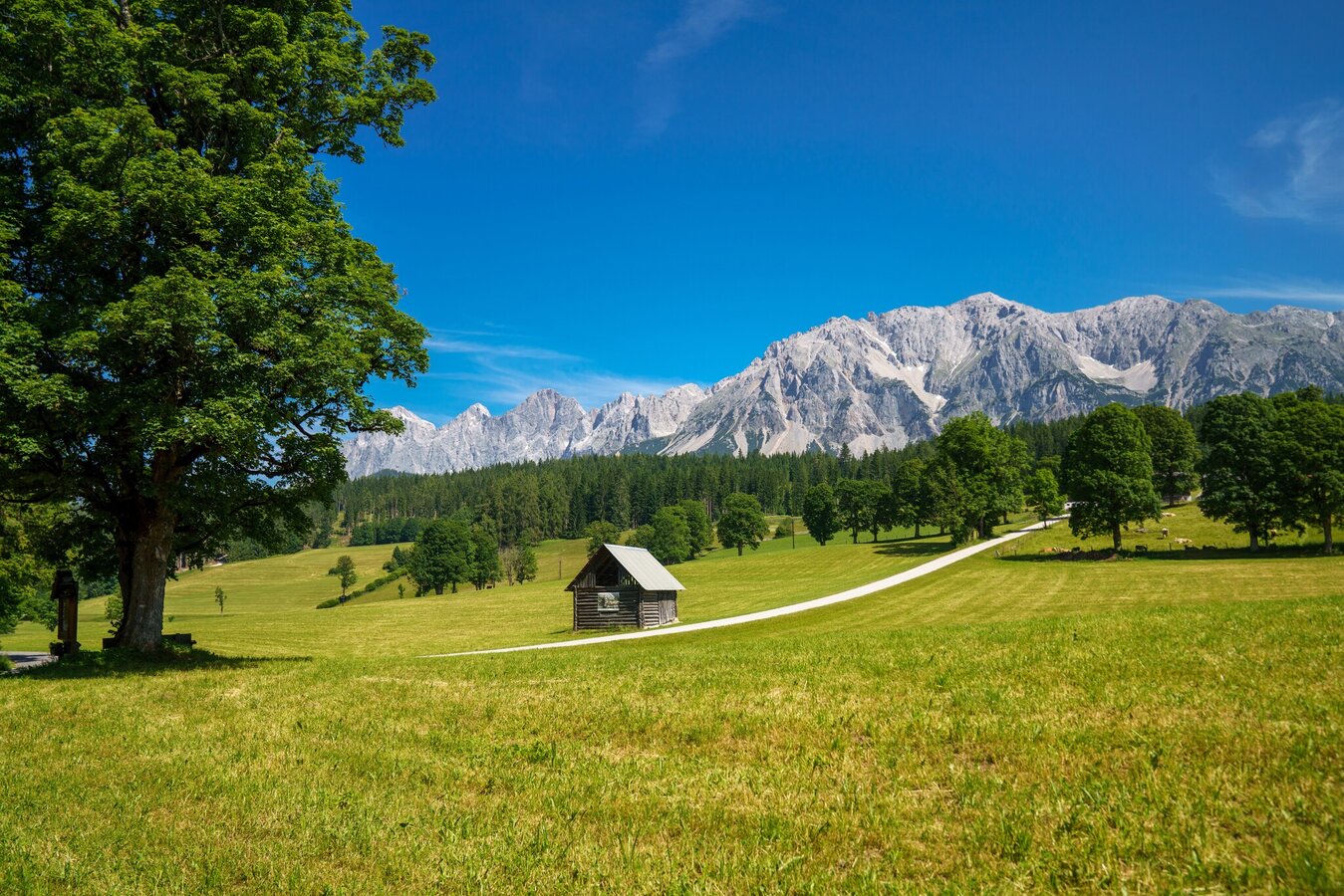 From there, a beautiful path will take you through a quiet forest. Its clearings will give you a beautiful view from the meadows to Dachstein's south face and the Ennstal valley.