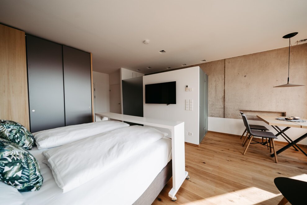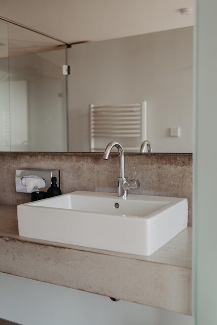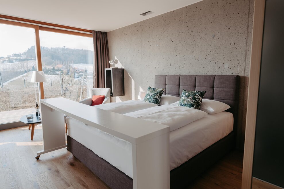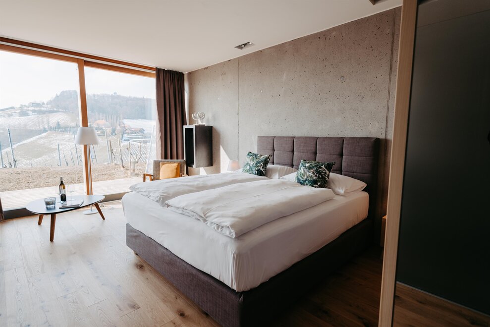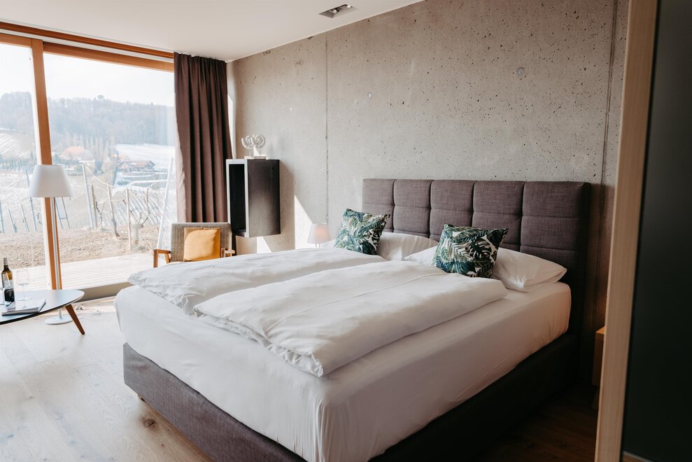 The building was newly constructed in 2022 and is quietly situated amidst the vineyards – a true architectural gem. The apartments in the house belong to different owners. Only a few are rented out to guests, which gives the accommodation its quiet, private character.