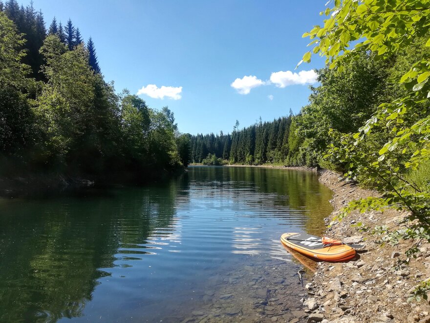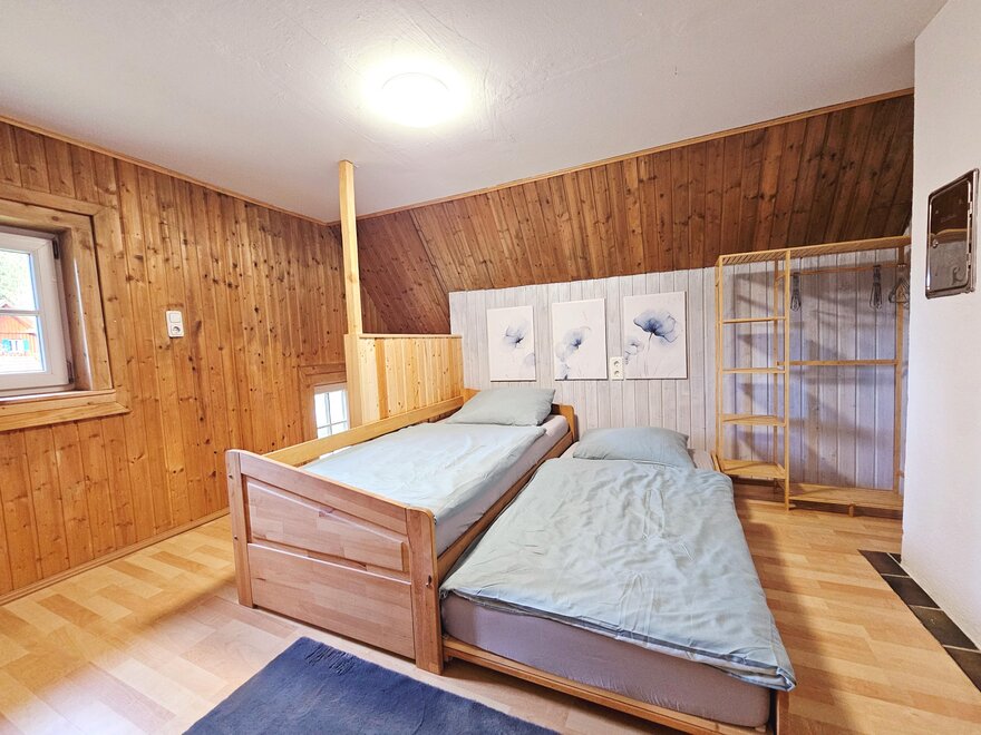 The self-catering cabin for up to 5 people is located directly on a mountain bike trail and hiking path and is easily accessible by car.