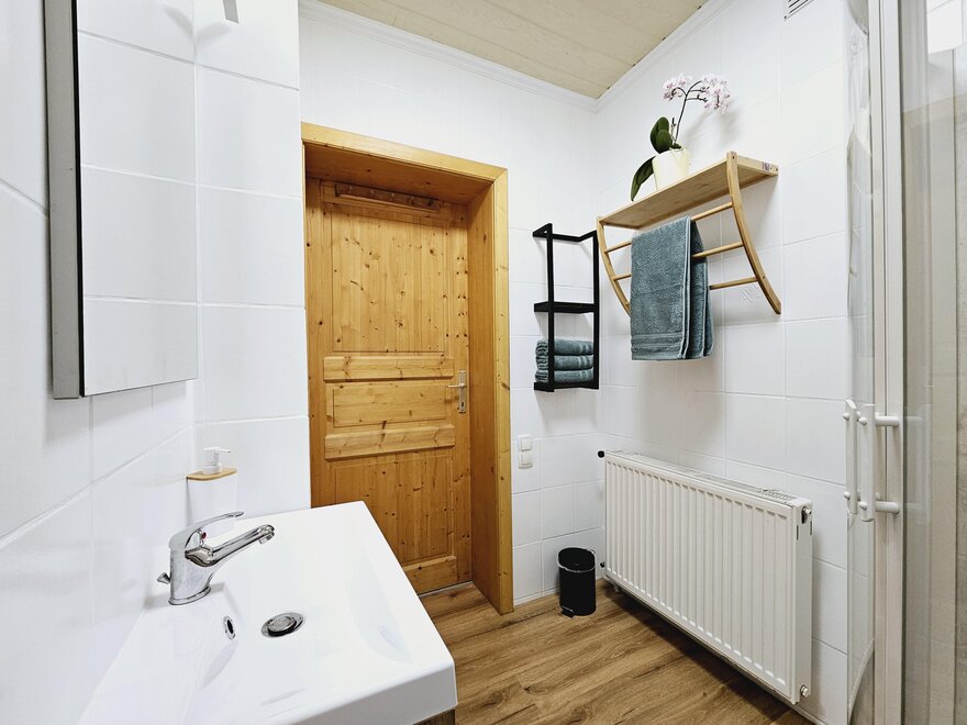- Entrance area with somewhat steeper space-saving staircase to the upper floor