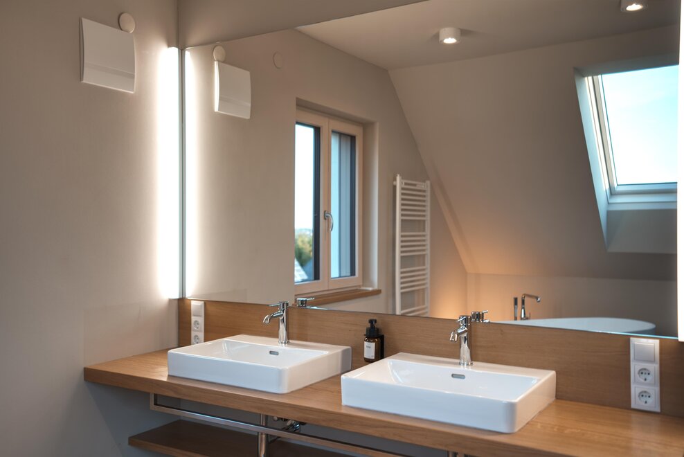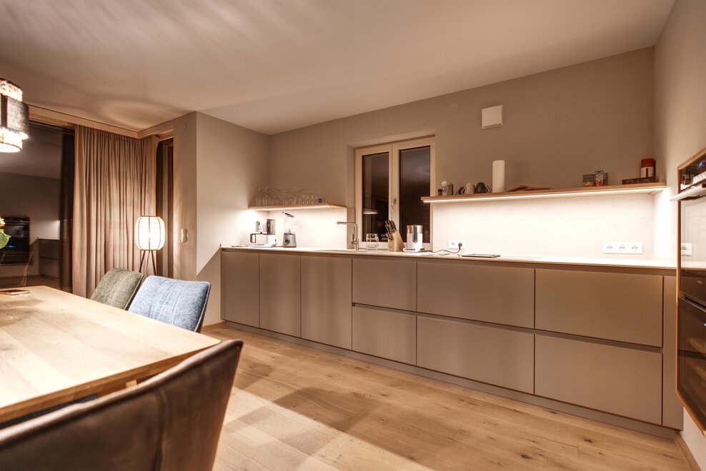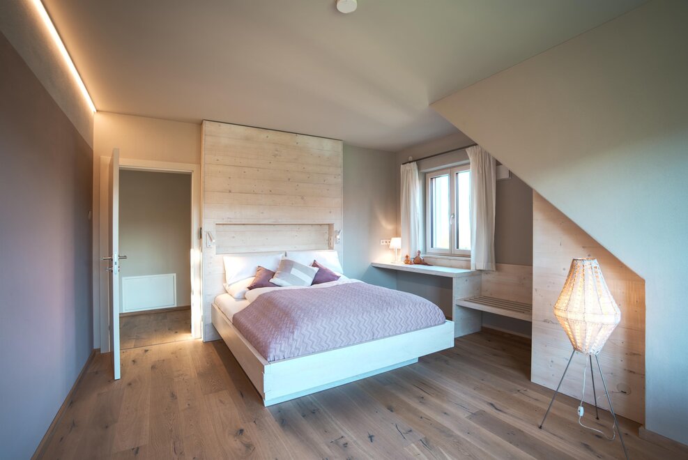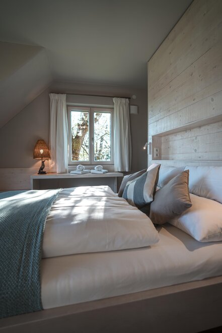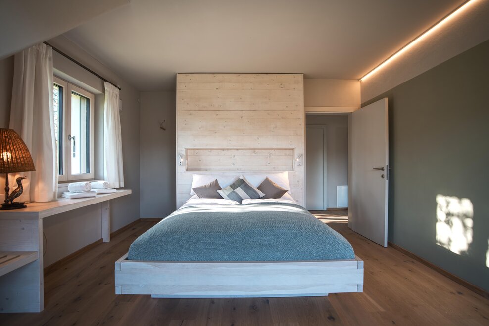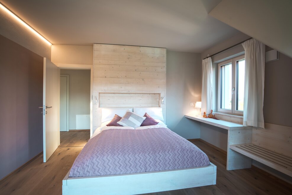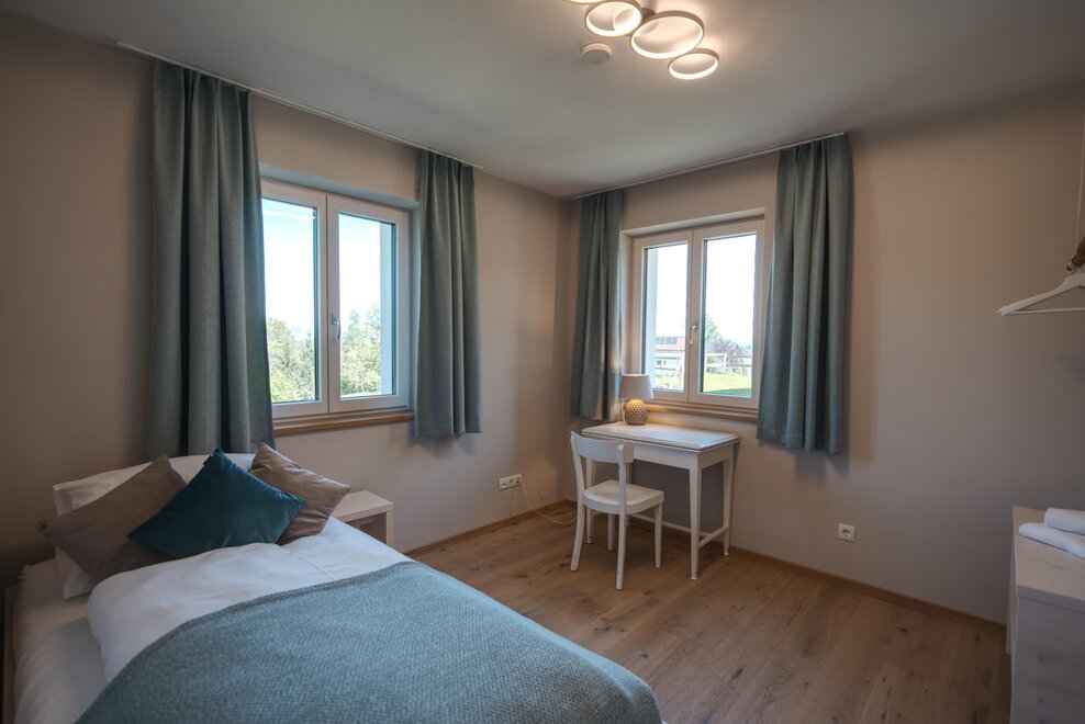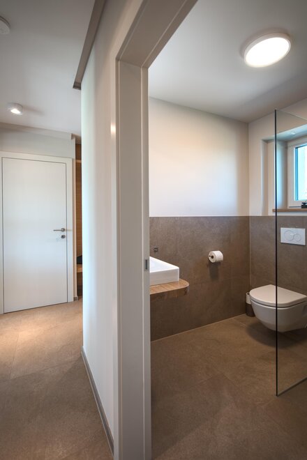 A fully equipped kitchen, 3 bedrooms with space for 5 people and a main bathroom with shower, free-standing bathtub, two washbasins and a washer-dryer await you. A separate WC is also located on the upper floor. In addition, there is a shower room with WC on the ground floor.